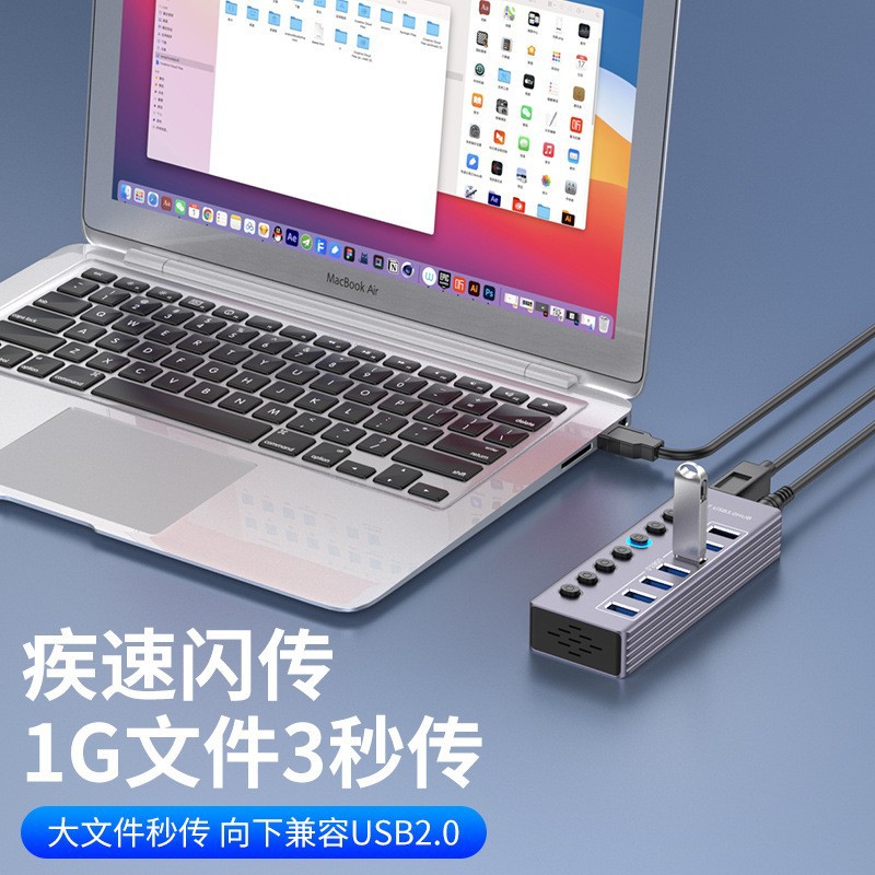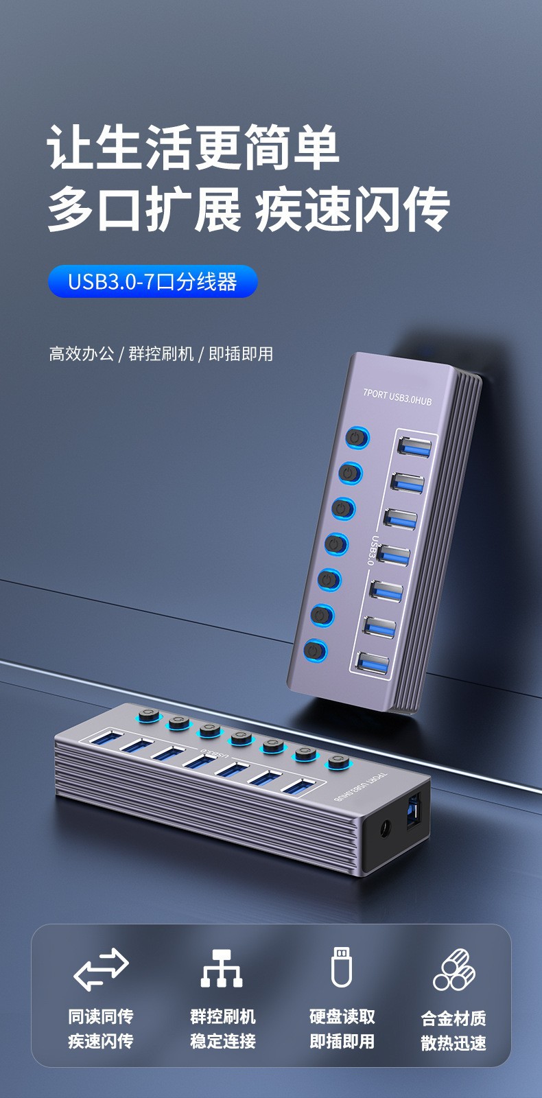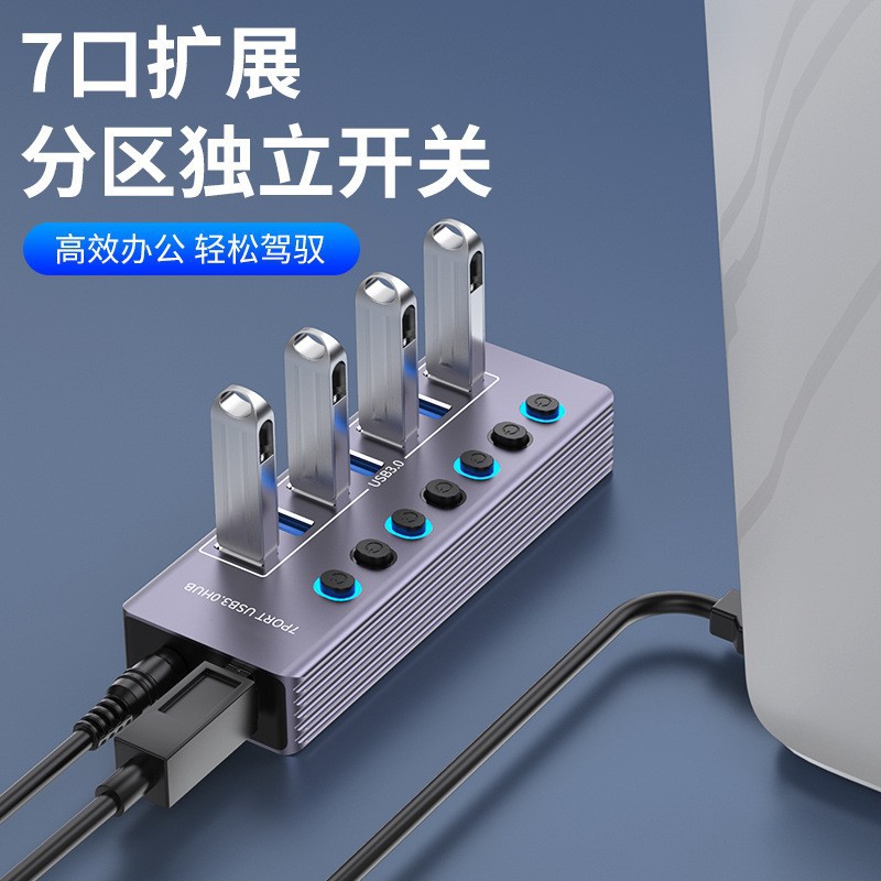 USB3.0HUB7 표시기 노트북이있는 독립적 인 스위치 3.0USB 허브 컬렉터스토어 가기