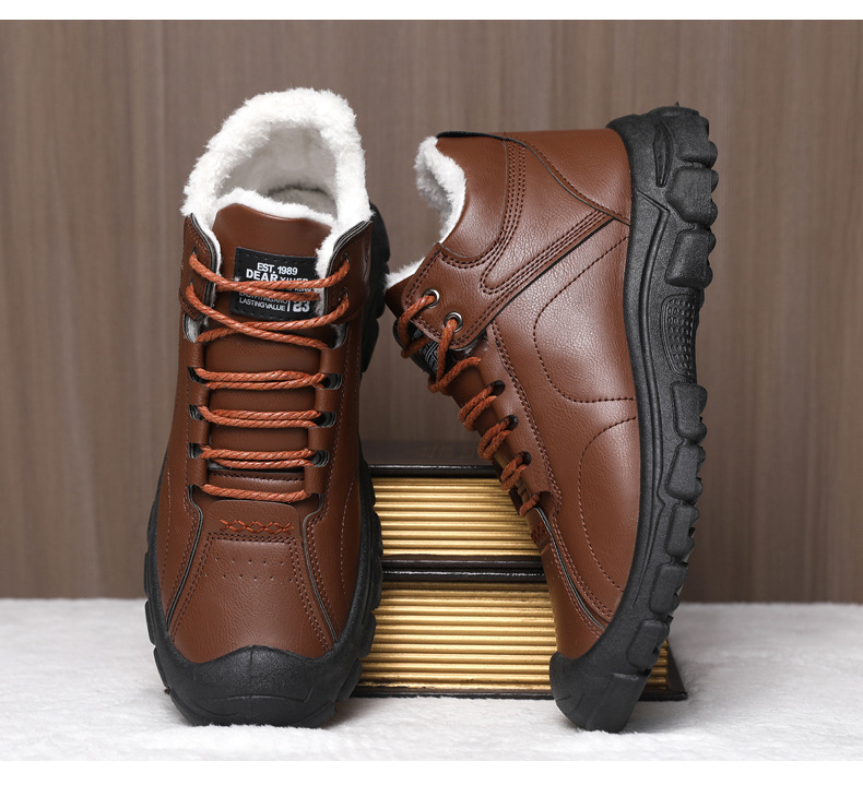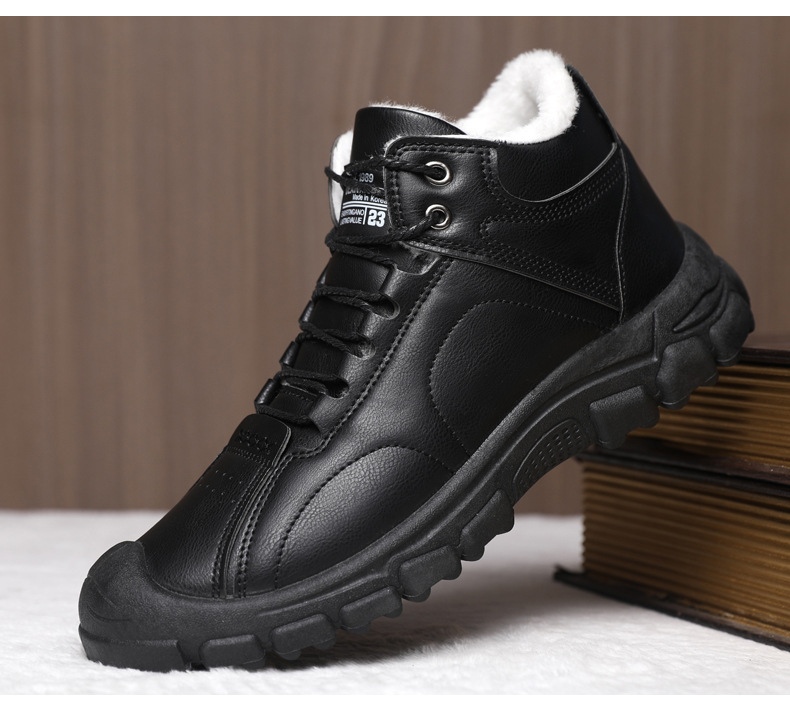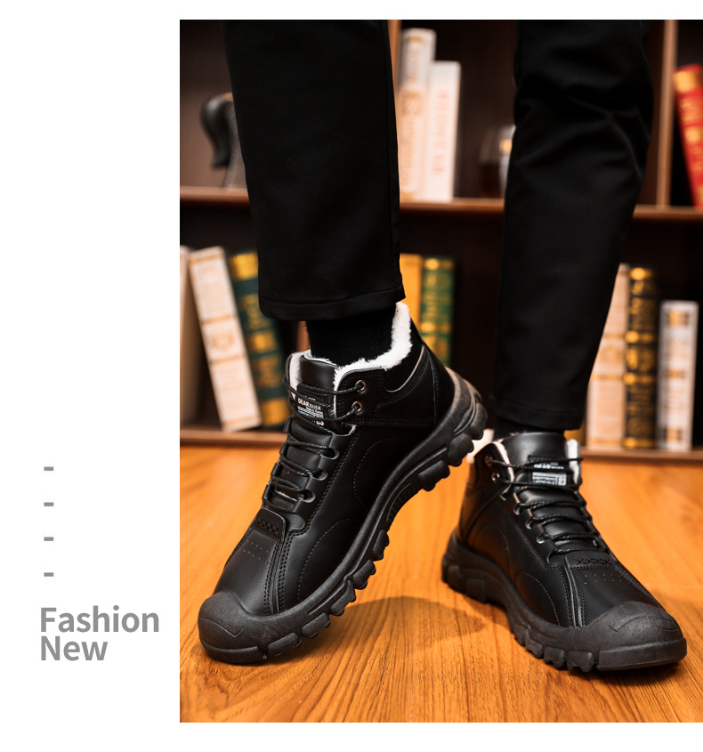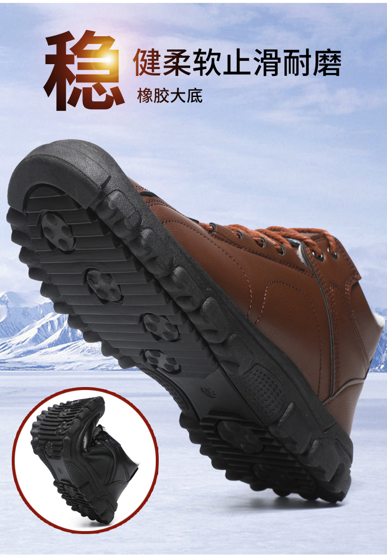 남성 초대형 겨울 하이탑 두꺼운 따뜻한 야외 기모 노동 보호 가죽 신발 편안한 부드러운 단독 남성면 신발스토어 가기