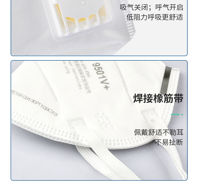 3M 마스크 9501V /9502V 호기 밸브 kn95 개별 포장 산업 먼지 pm2.5 보호 마스크스토어 가기