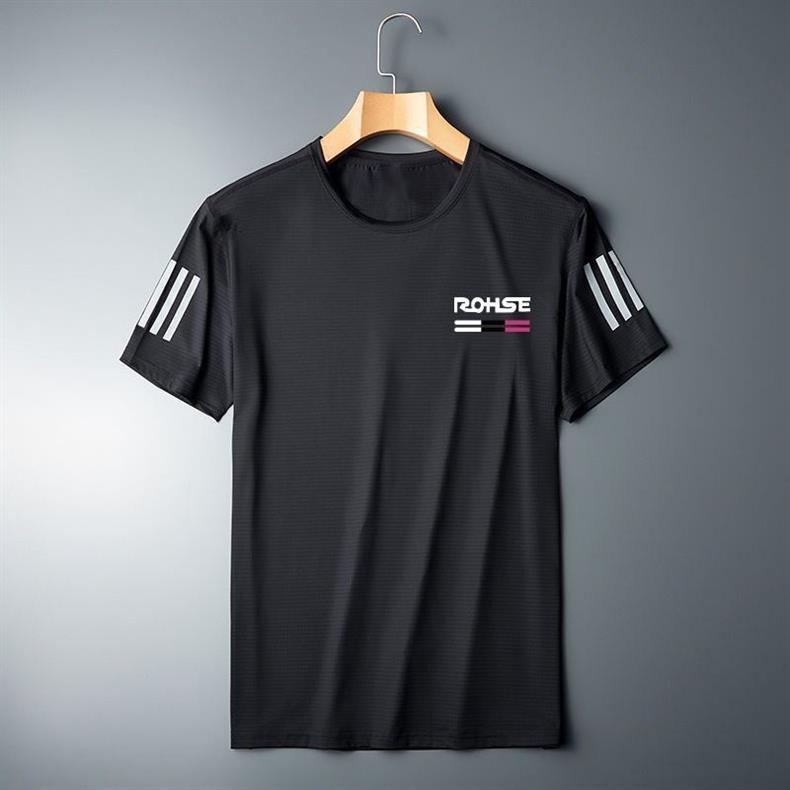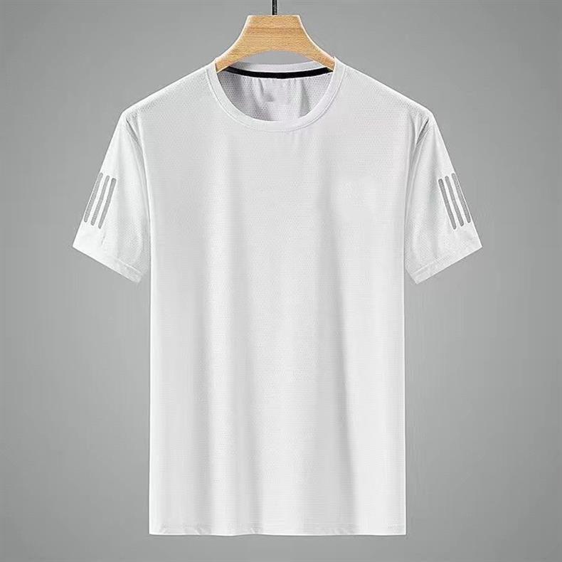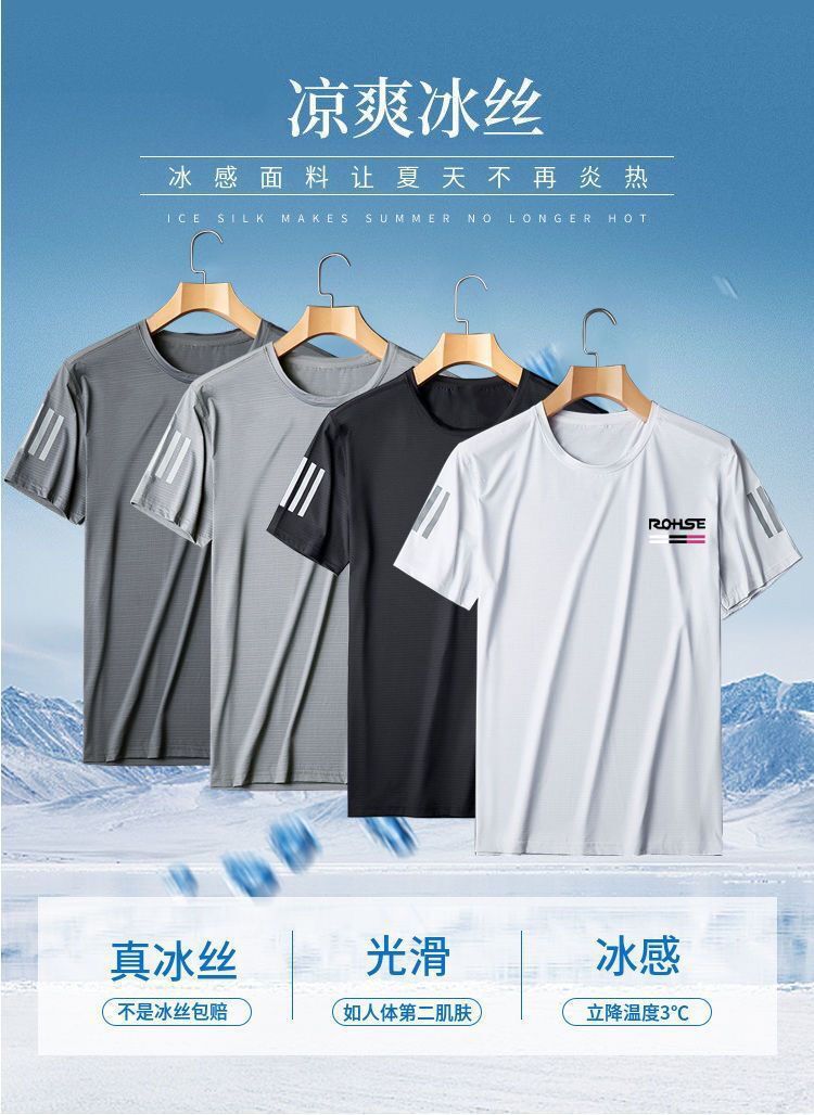 티셔츠 올 매치 프린트 여름 아이스 실크 메쉬 슬림 룩 얇은 미국 라운드 넥 퀵 건조 반팔 티셔츠 남성 스포츠 스타일