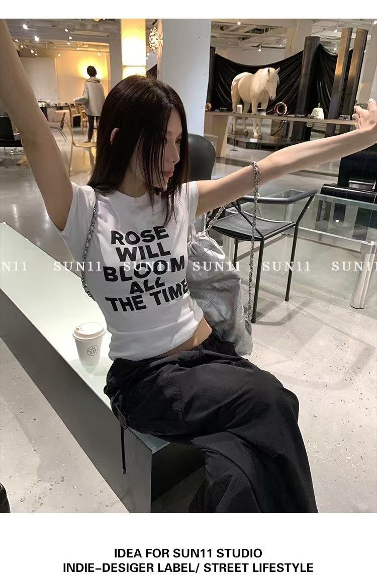 여름 여성을 위한 아메리칸 레트로 레터 프린트 반팔 티셔츠 새로운 디자인 틈새 화이트 슬림핏 탑스토어 가기