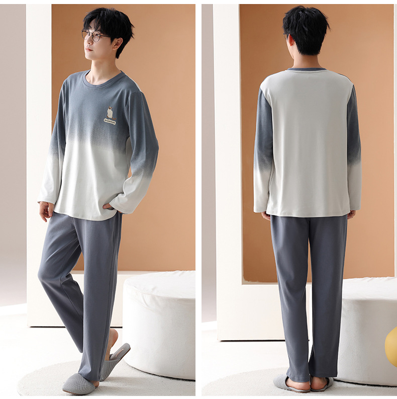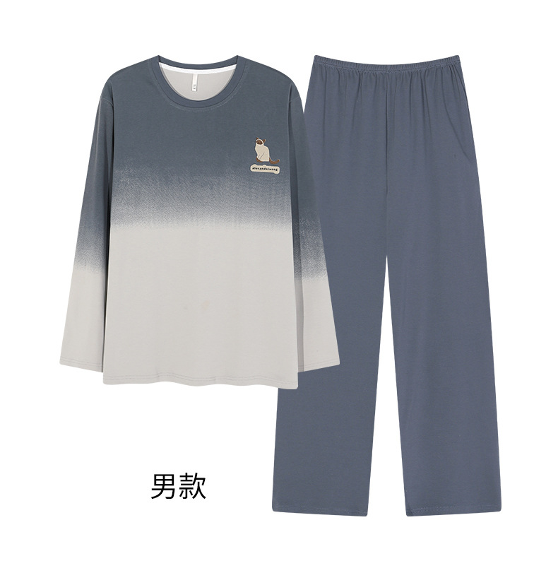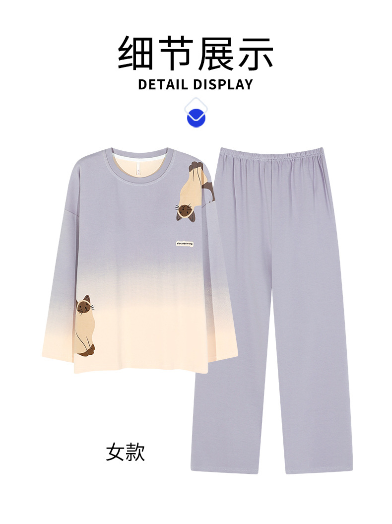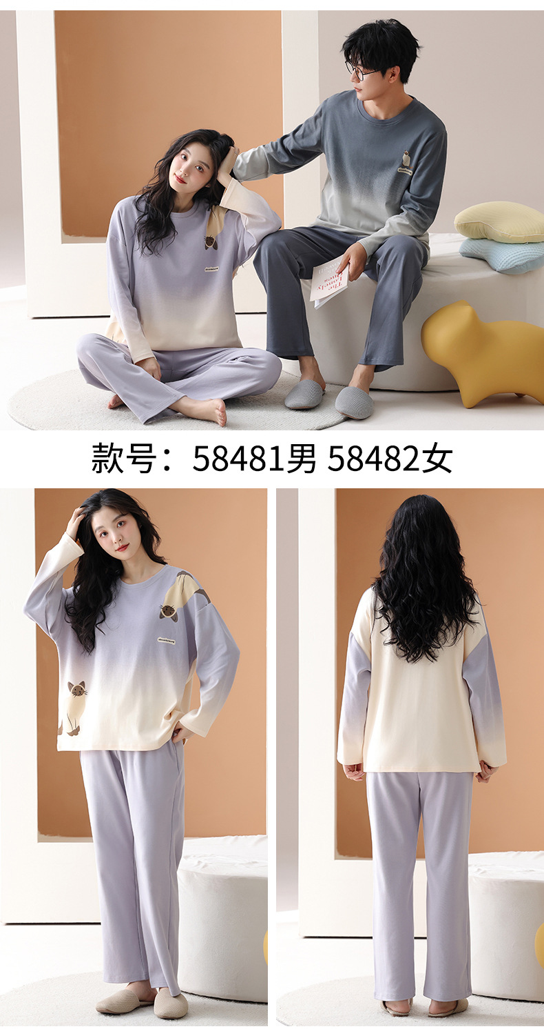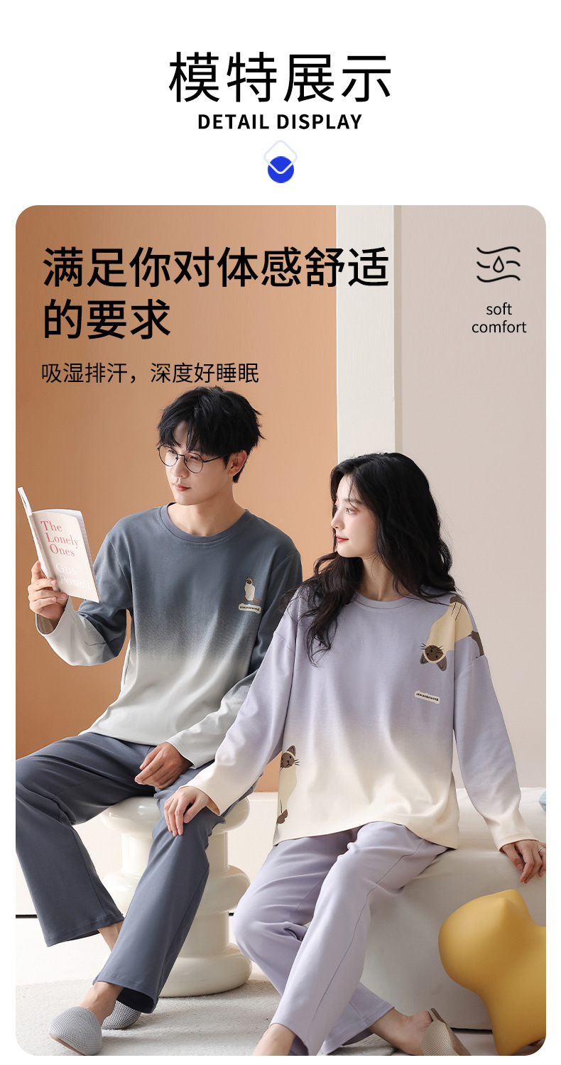 봄과 가을 순면 커플 잠옷 여자 봄 긴 소매 바지 세트 가슴 패드와 함께 캐주얼 만화 잠옷을 입을 수 있습니다스토어 가기