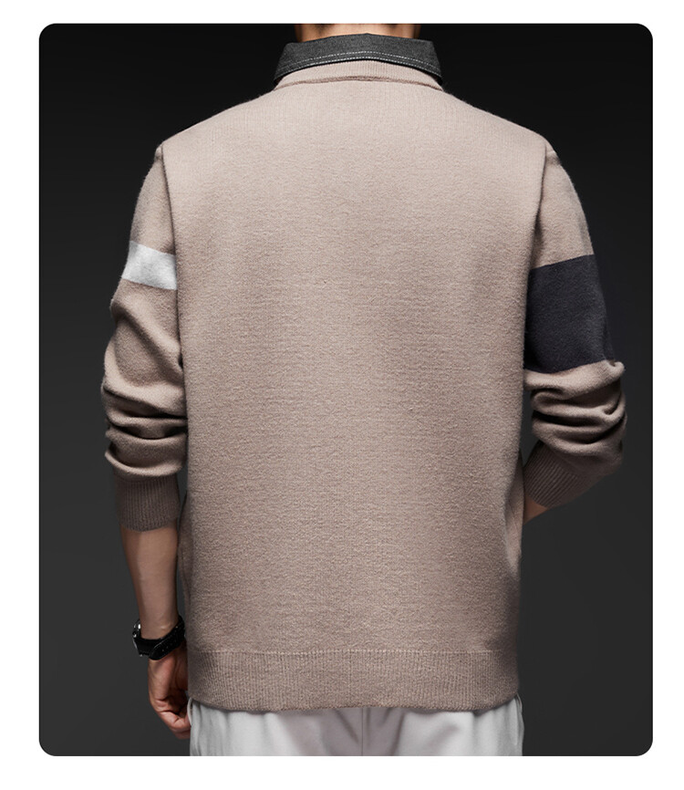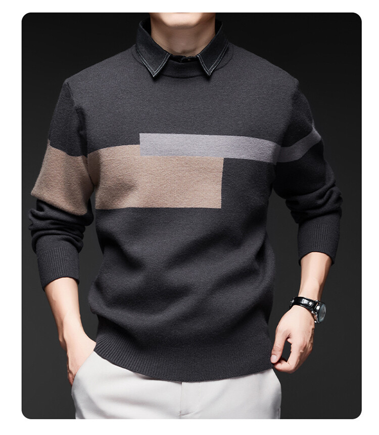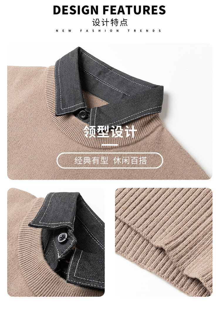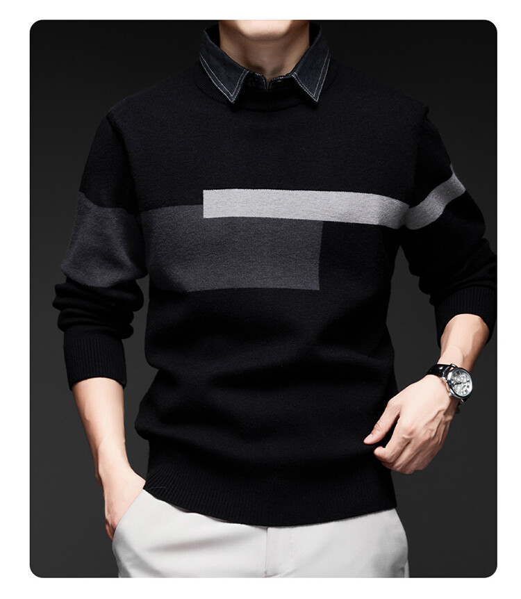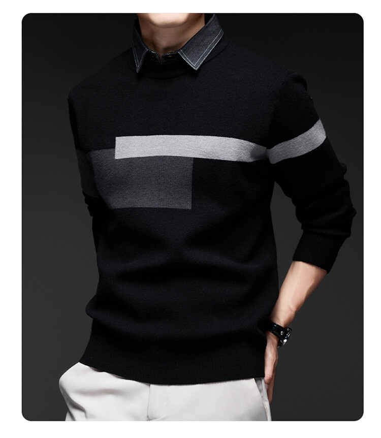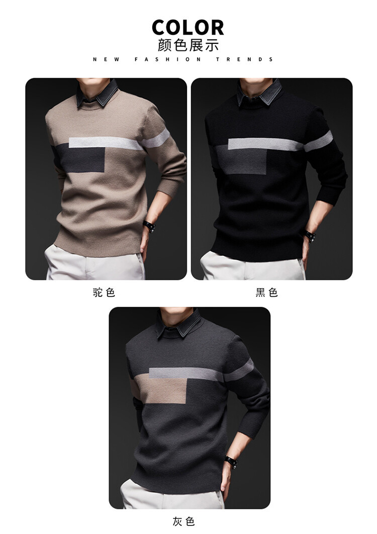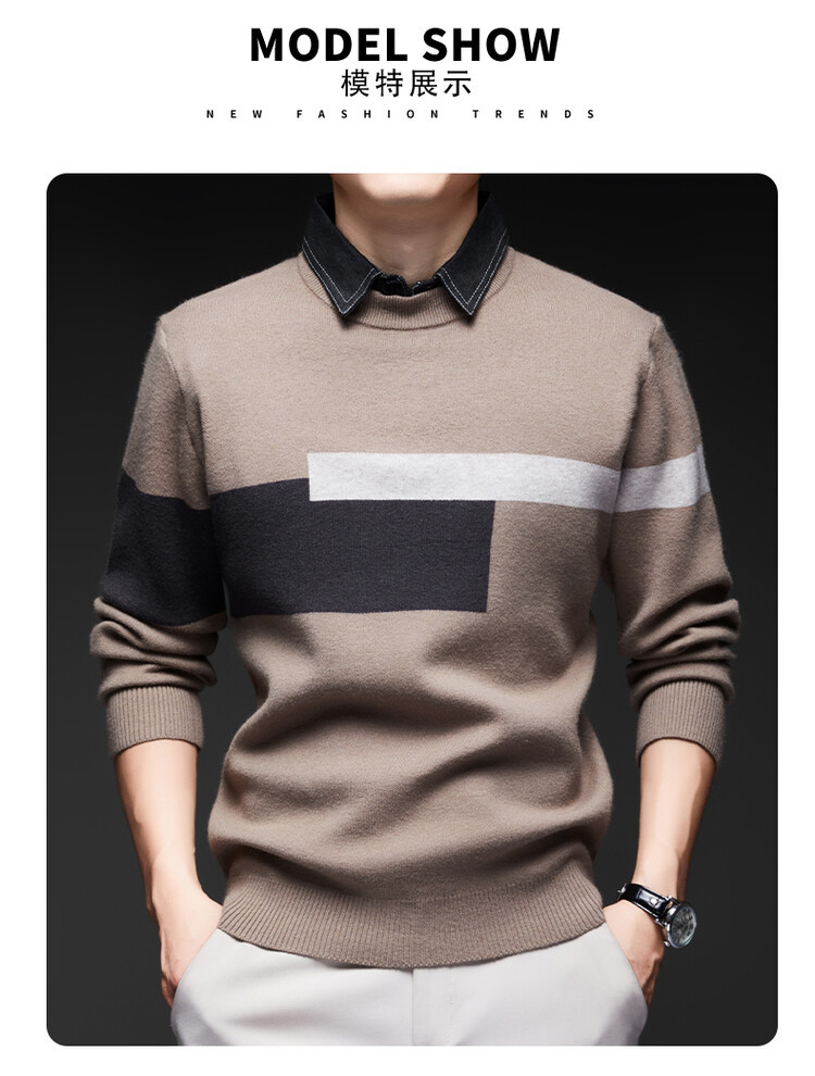 2024 가을과 겨울 새로운 긴 소매 폴로 셔츠 캐주얼 남성베이스 셔츠 남성용 스웨터 니트 셔츠 가짜 투피스 비즈니스