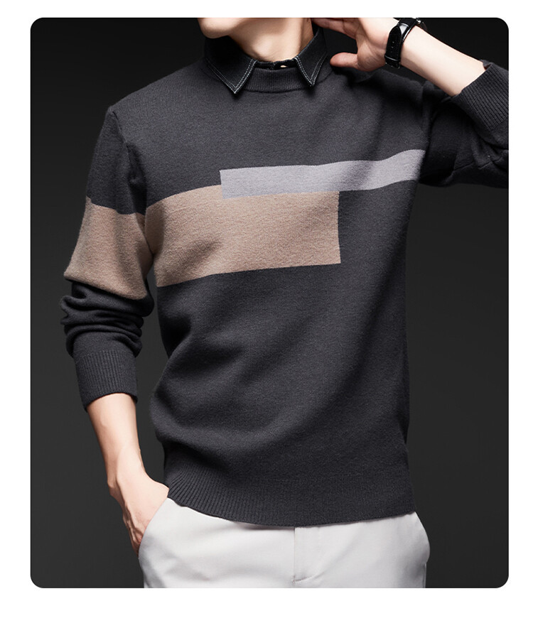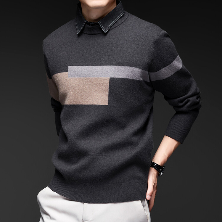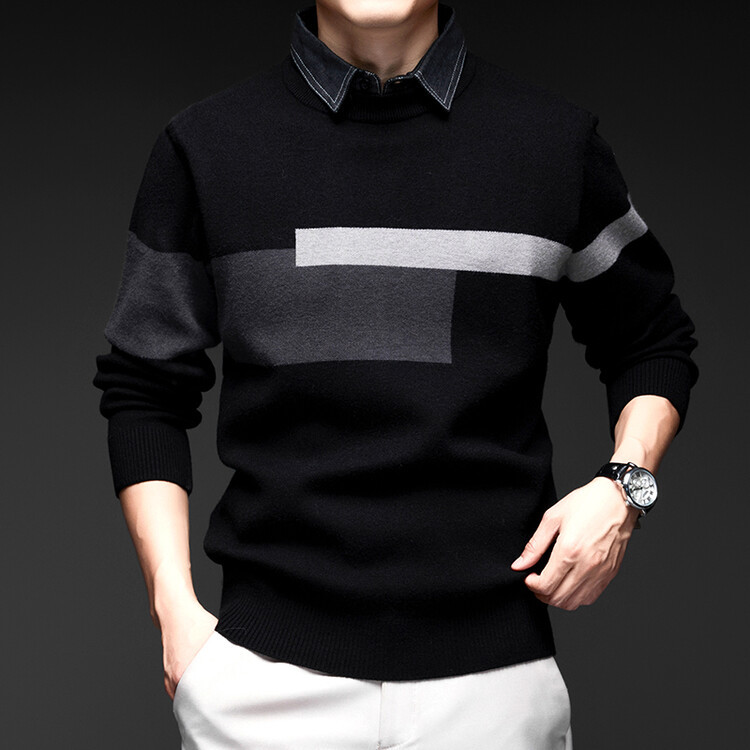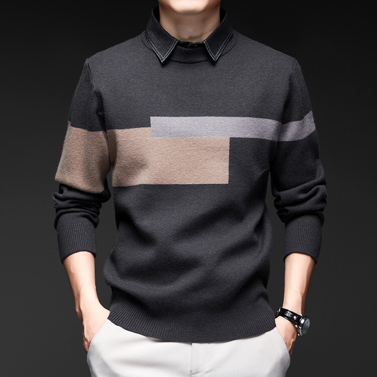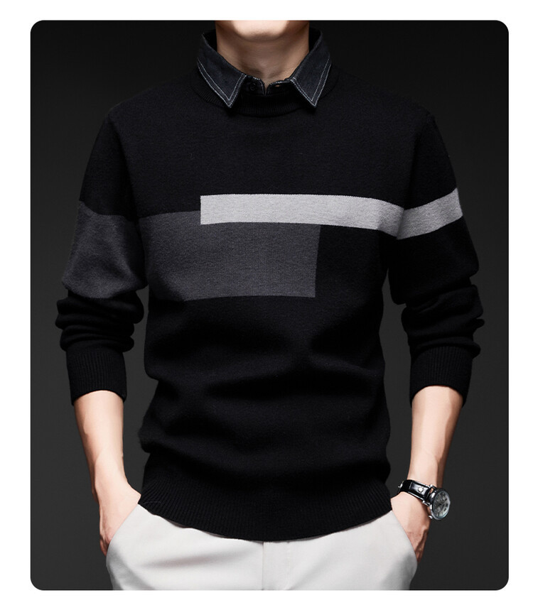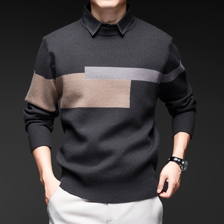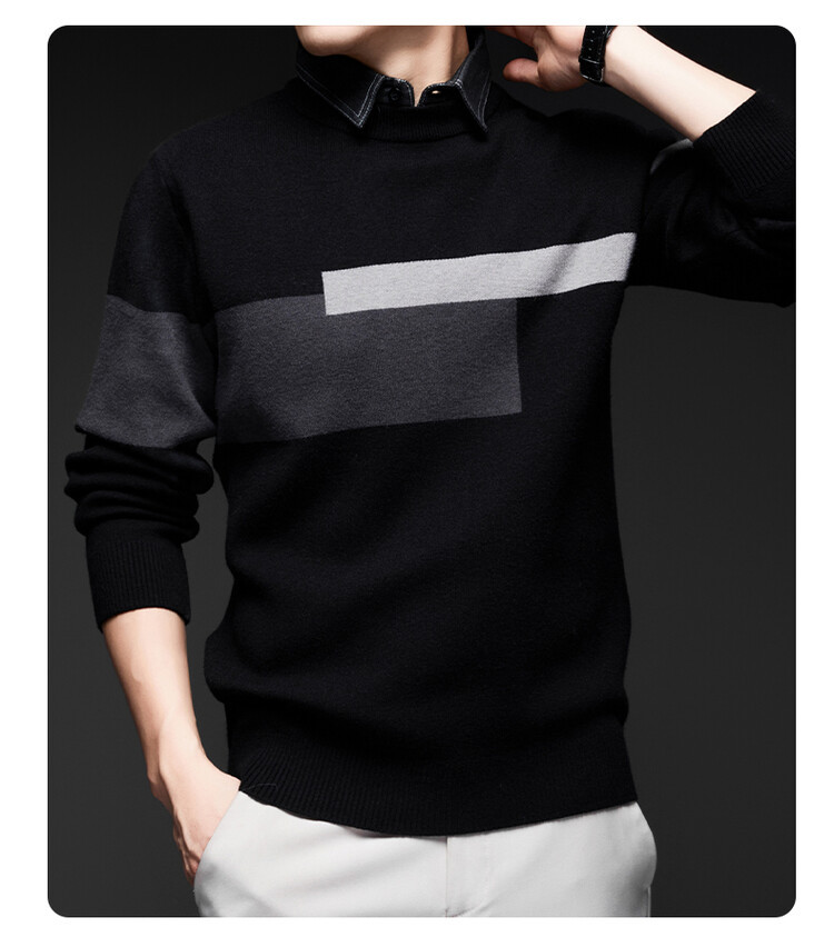 2024 가을과 겨울 새로운 긴 소매 폴로 셔츠 캐주얼 남성베이스 셔츠 남성용 스웨터 니트 셔츠 가짜 투피스 비즈니스