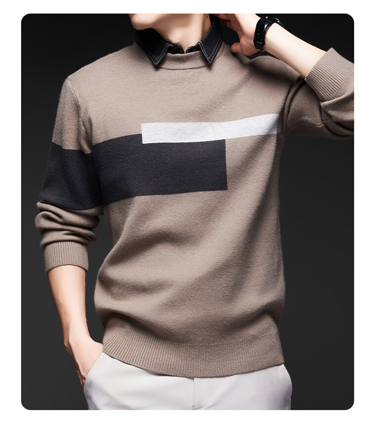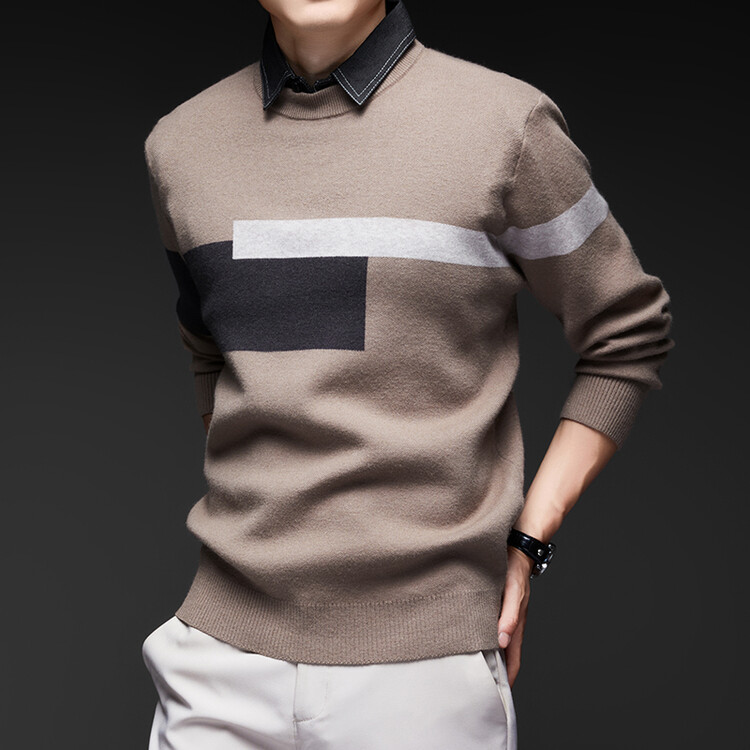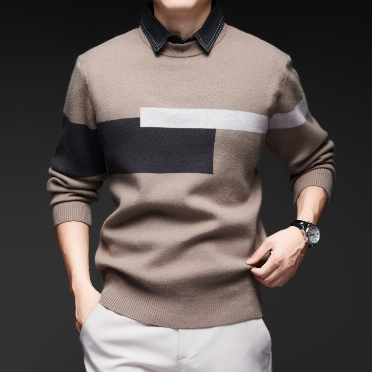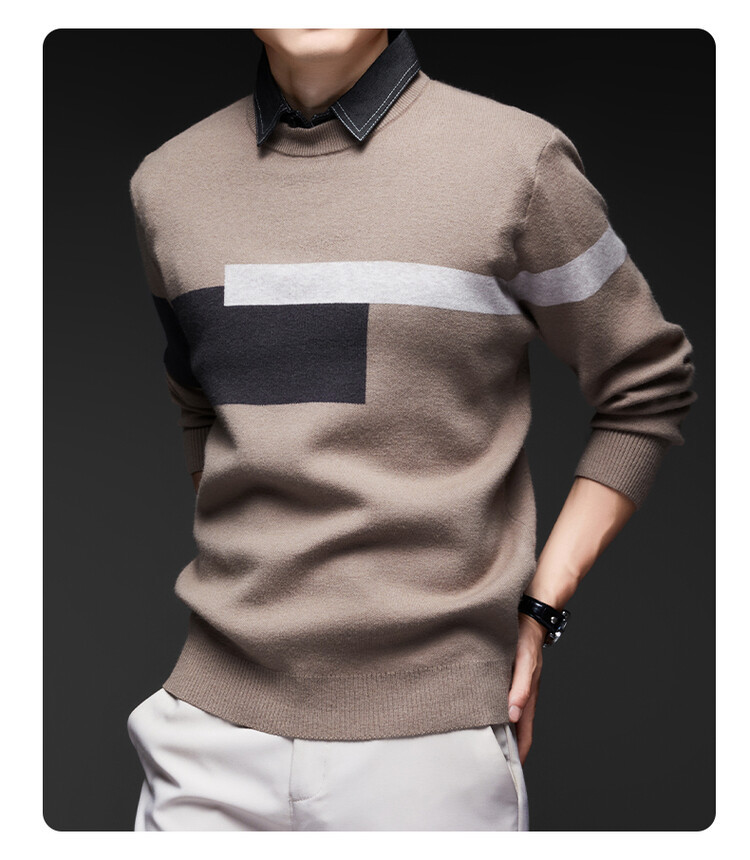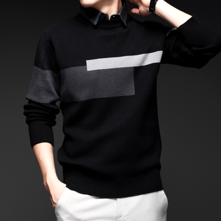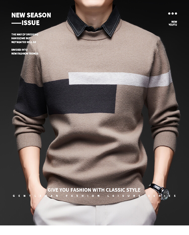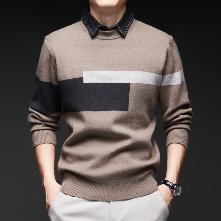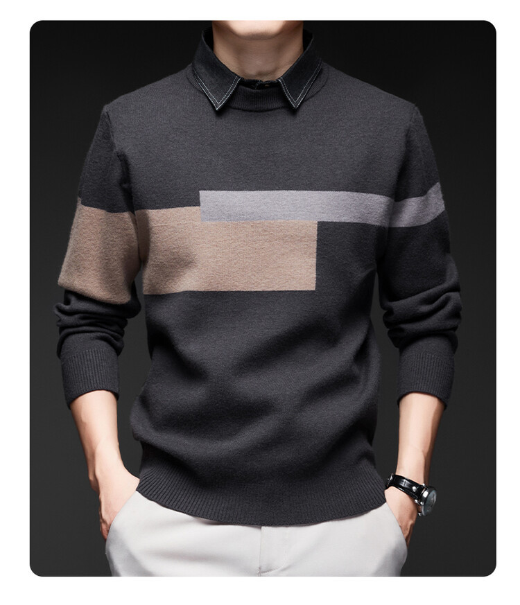 2024 가을과 겨울 새로운 긴 소매 폴로 셔츠 캐주얼 남성베이스 셔츠 남성용 스웨터 니트 셔츠 가짜 투피스 비즈니스