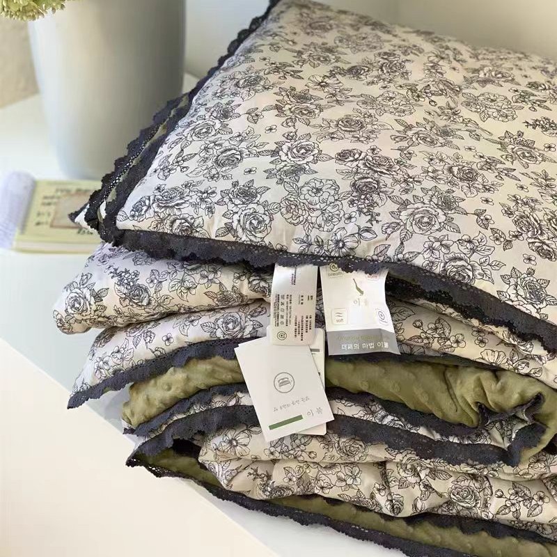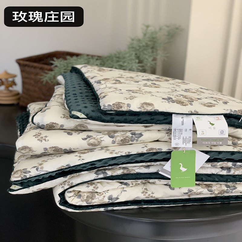 한국 거위 두 사람 Pacifying Doudou 봄과 가을 퀼트 기계 세탁기 순수 코튼 따뜻한 퀼트 코어 레트로 플로랄 두꺼운 이불