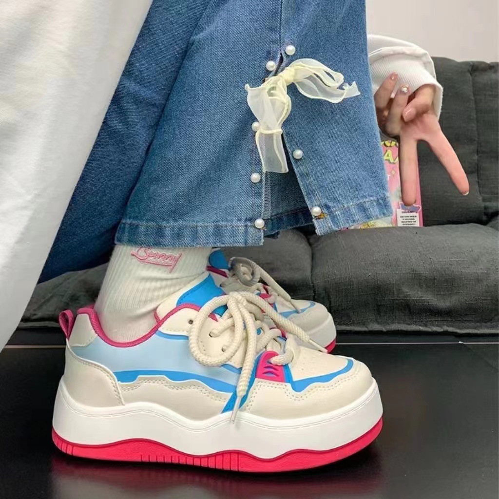전국 패션 오리지널 폭발 두꺼운 흰색 신발 미국 패션 싱글 레이어 신발 2024 가을 새로운 올 매치 로우 탑 여성 신발