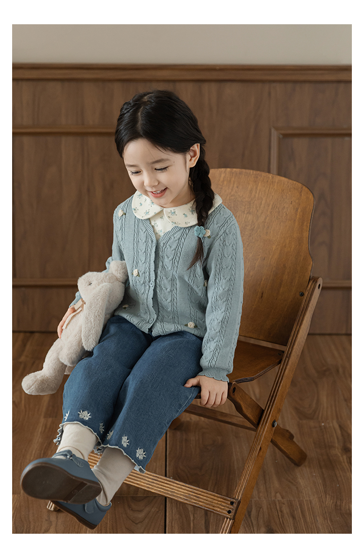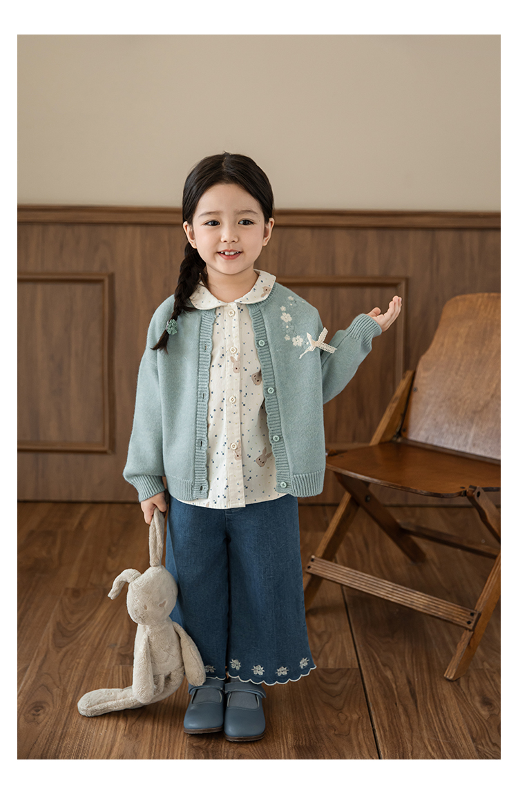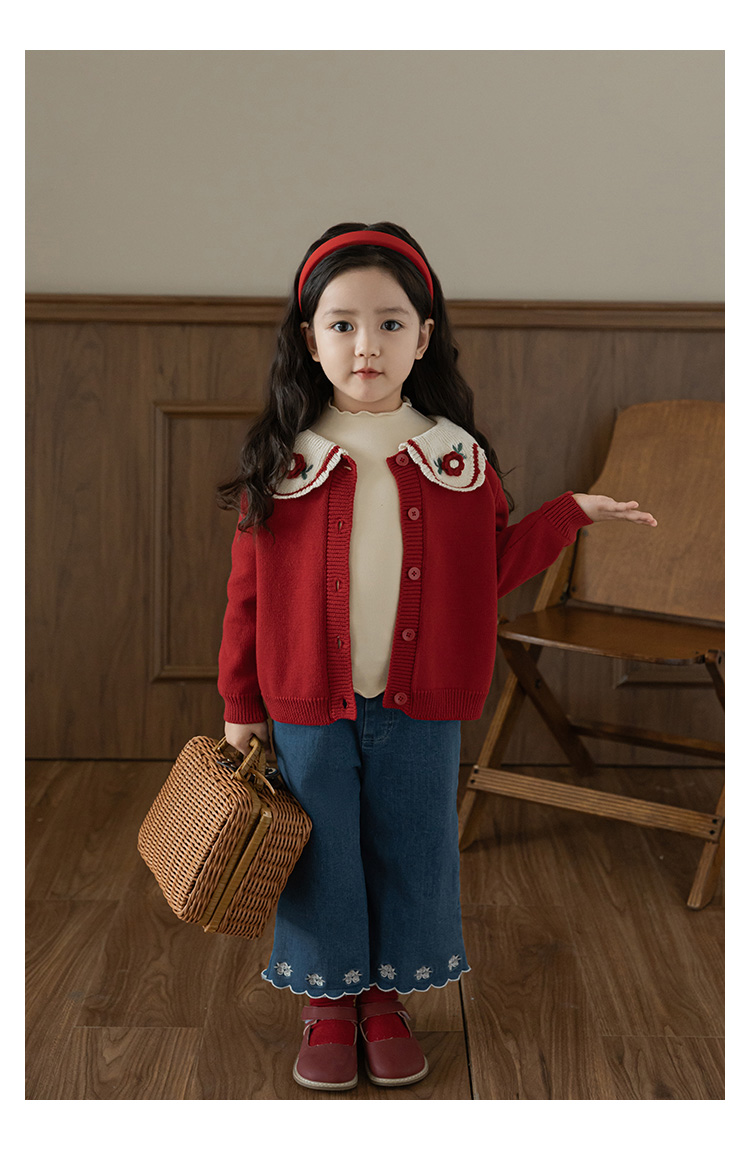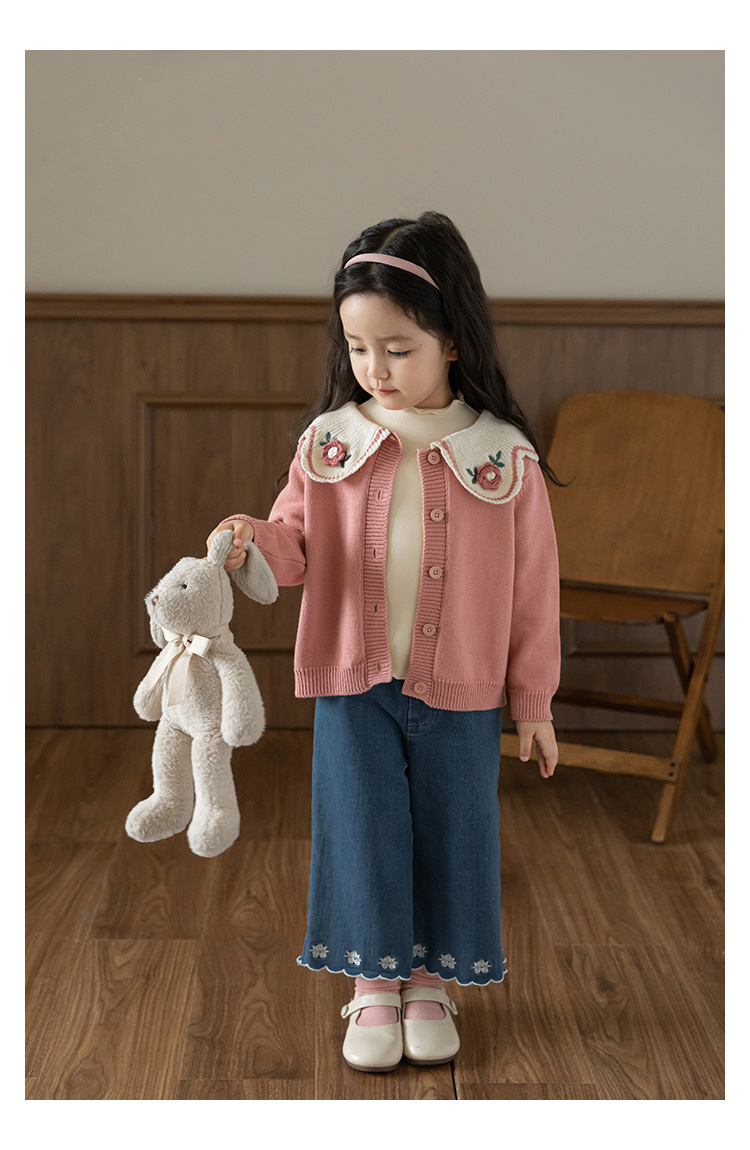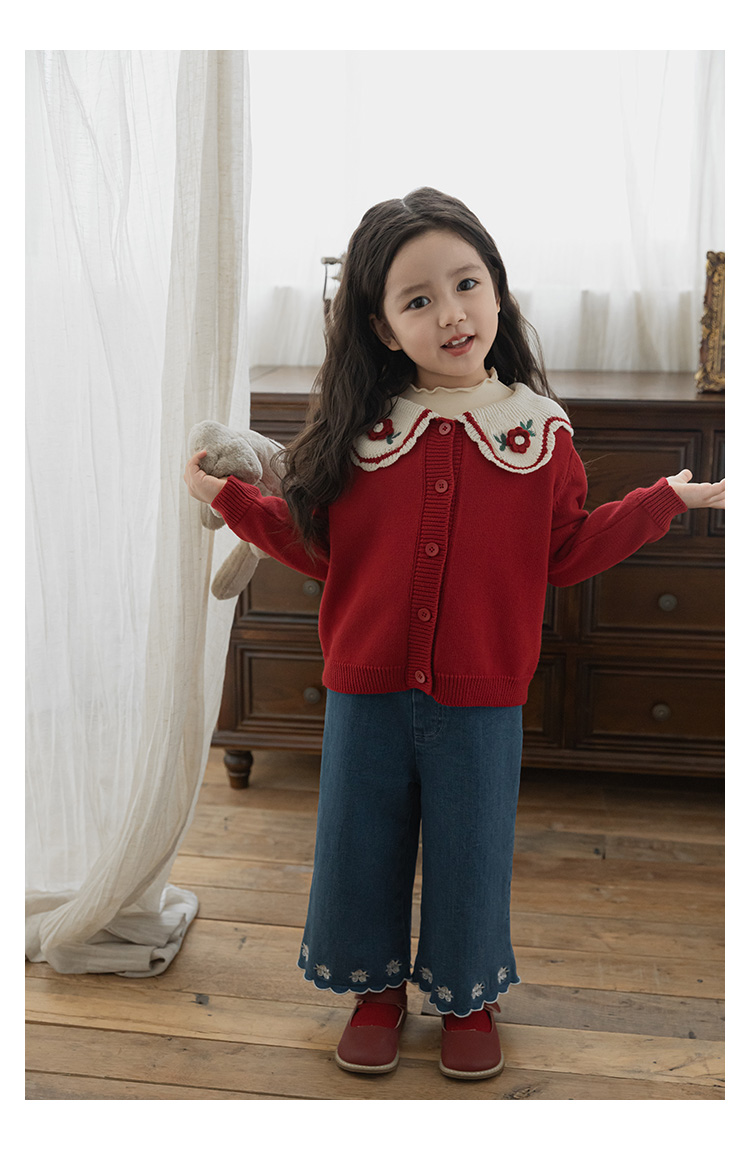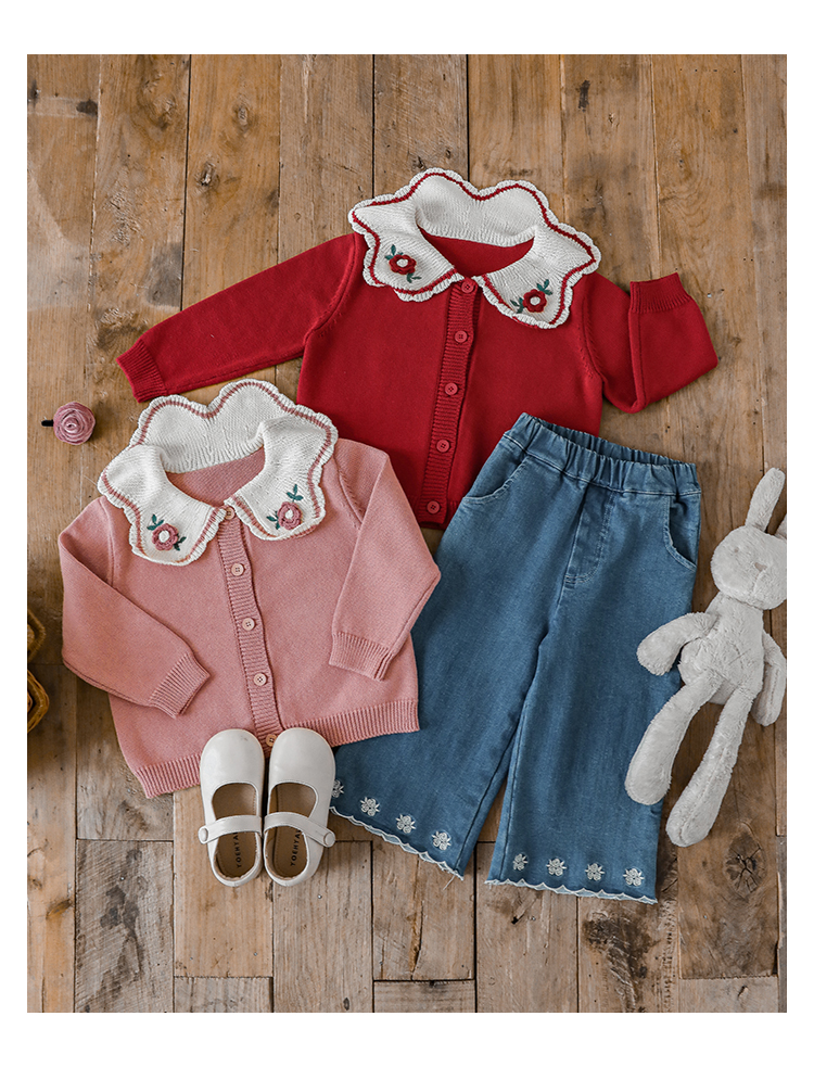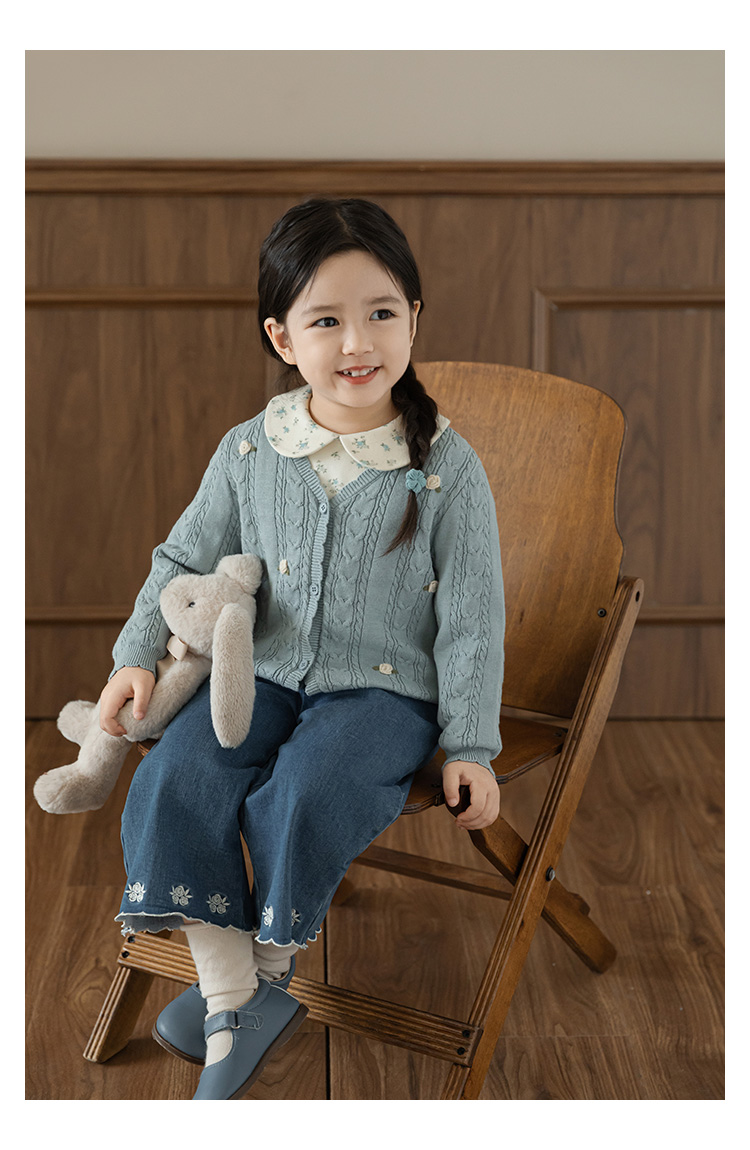 Wulibu 여아용 자수 레이스 청바지 2025 가을 어린이용 생기 넘치는 귀여운 9부 와이드 팬츠스토어 가기