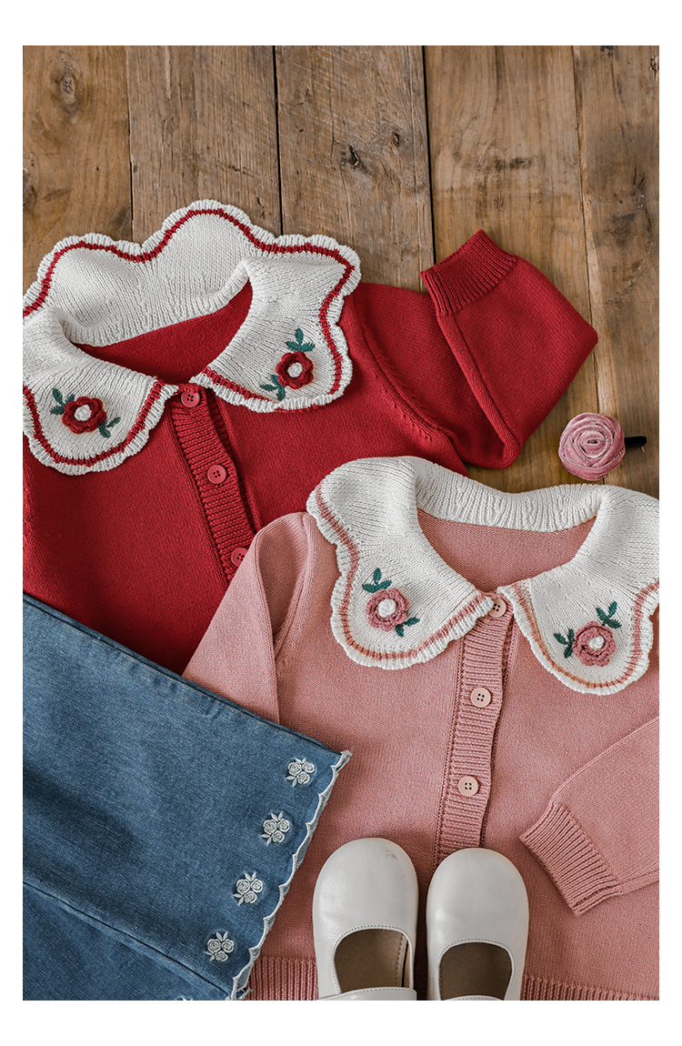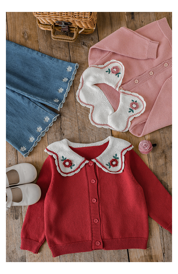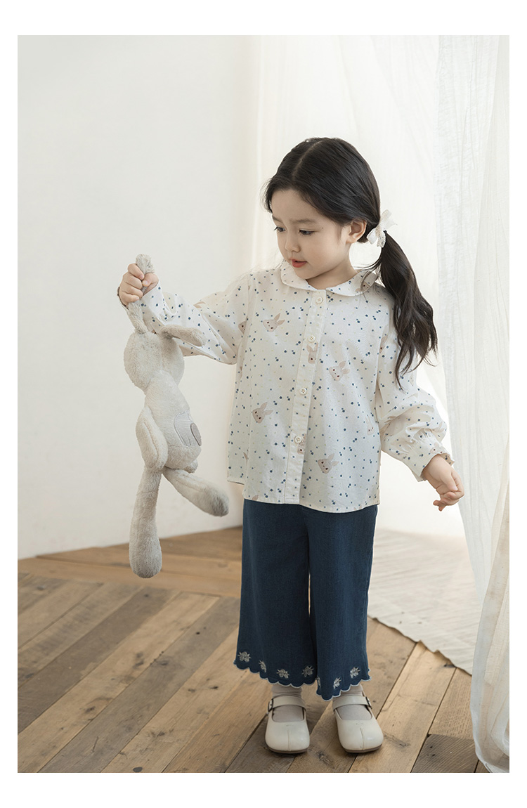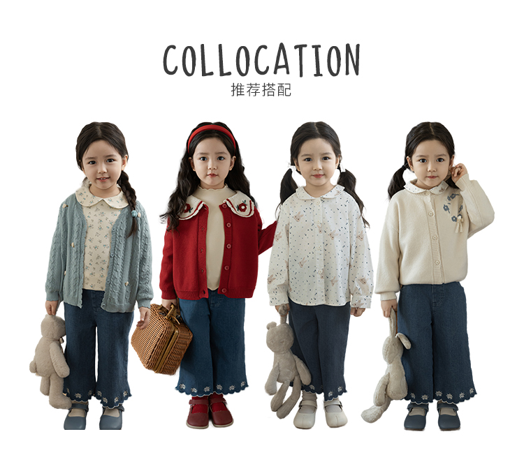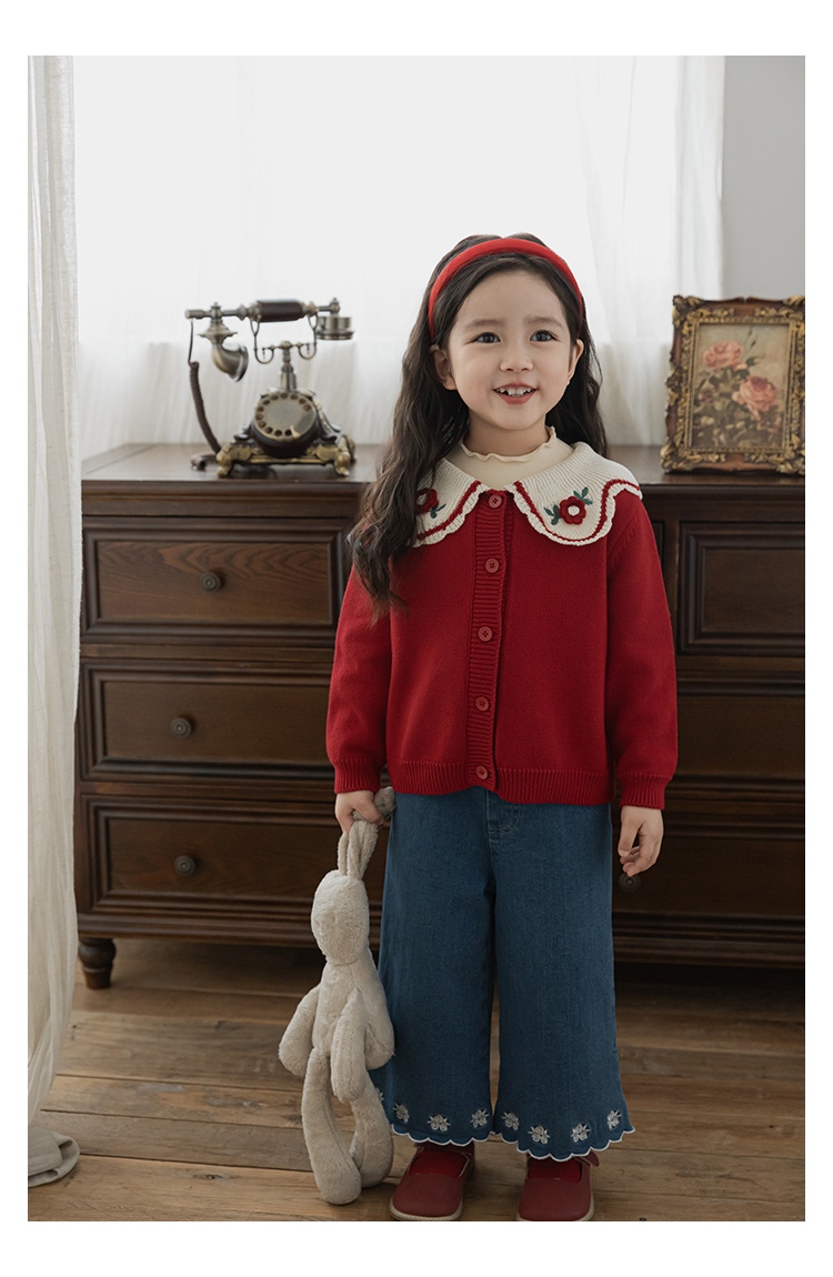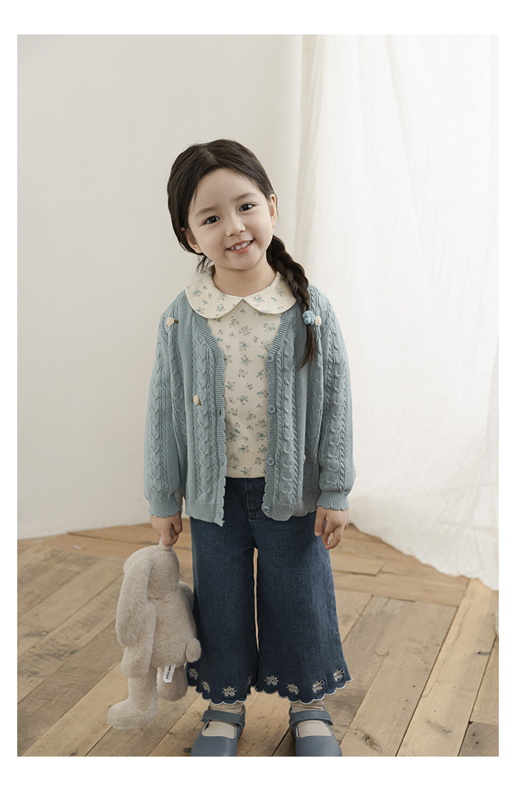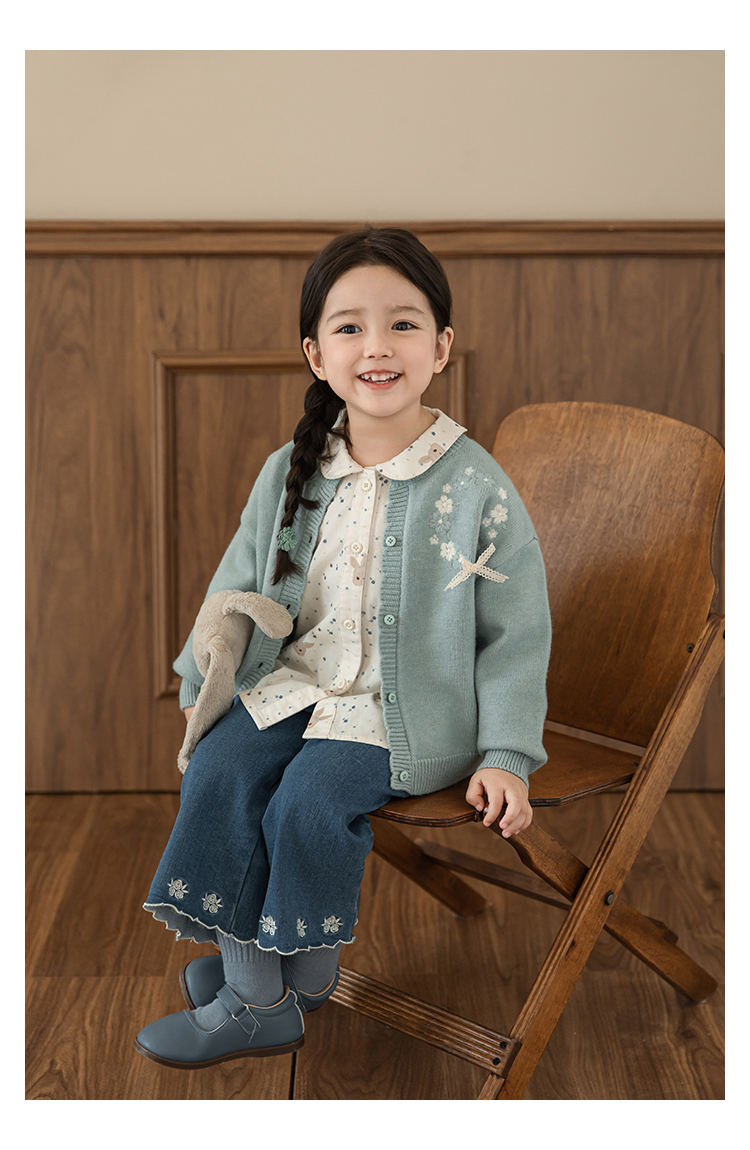 Wulibu 여아용 자수 레이스 청바지 2025 가을 어린이용 생기 넘치는 귀여운 9부 와이드 팬츠스토어 가기
