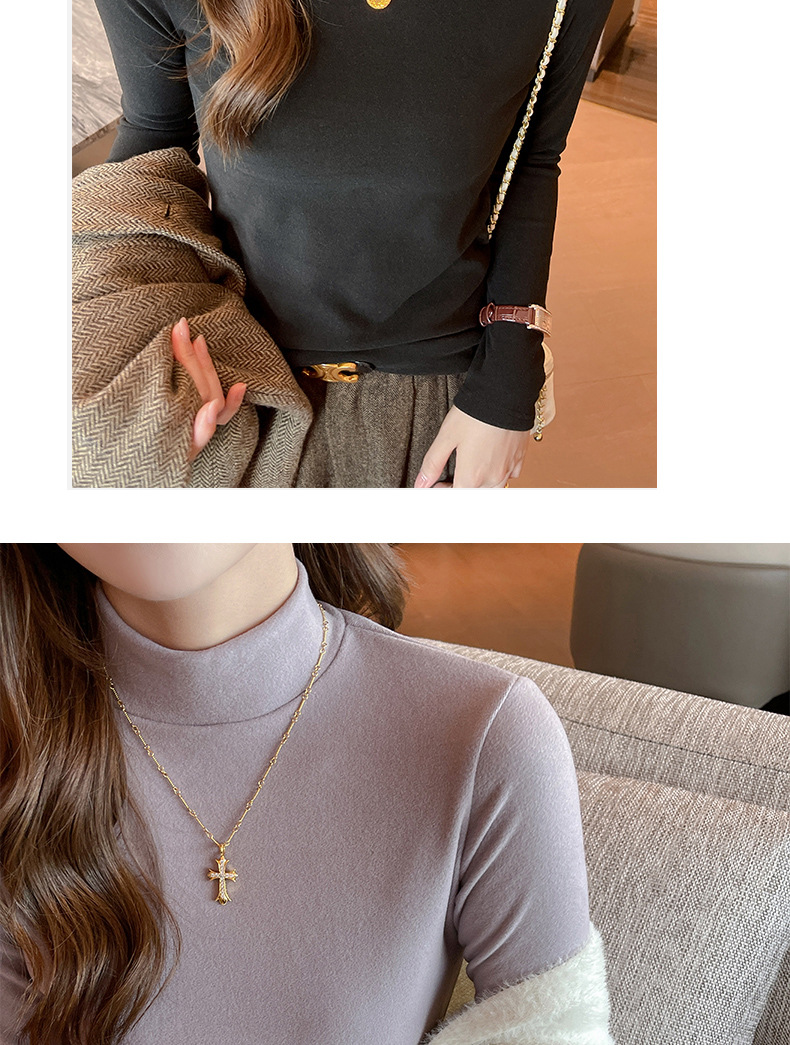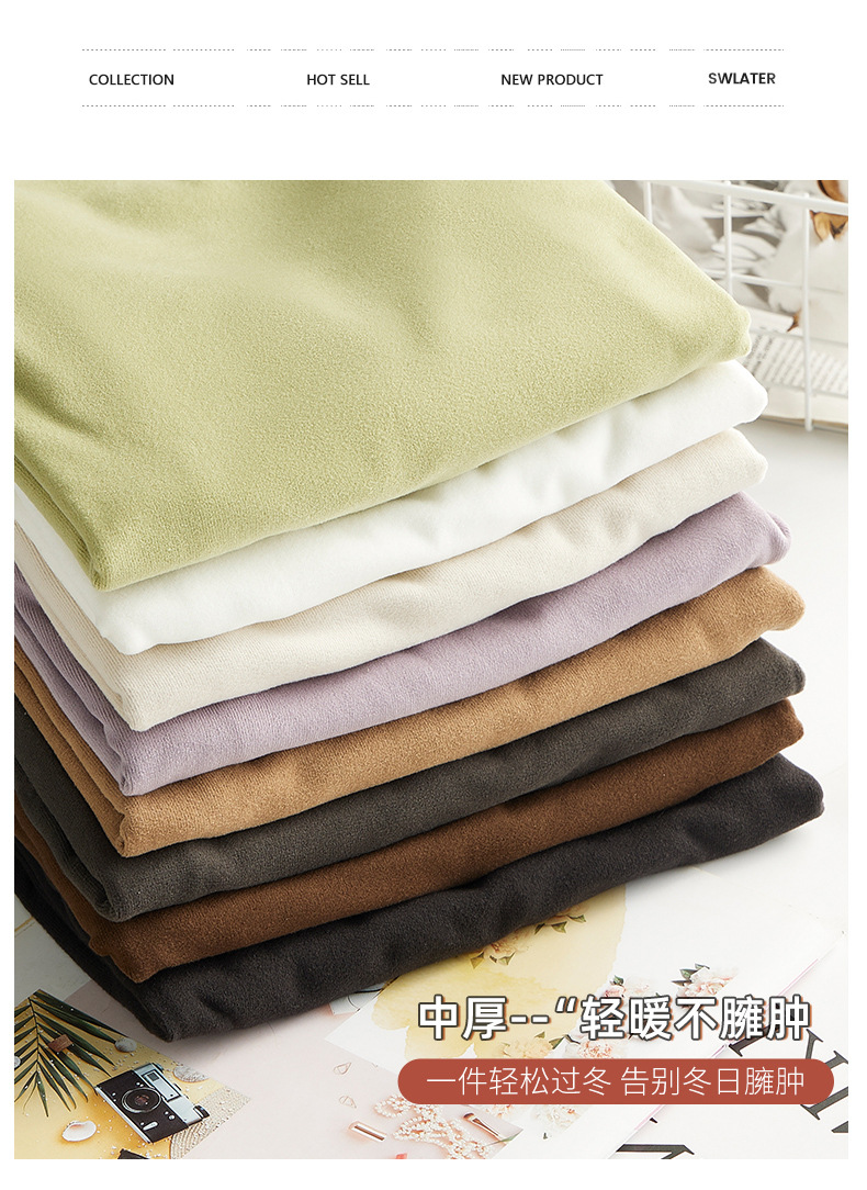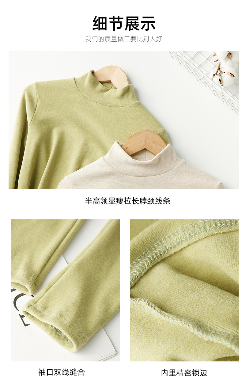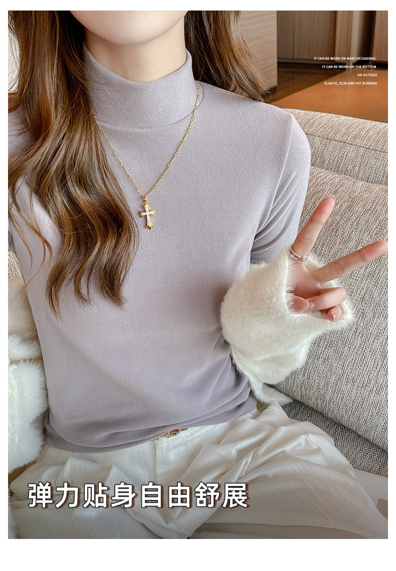 가을과 겨울 마이크로 미디 벨벳 세미 하이 칼라 바닥 셔츠 여성 인테리어, 미드 칼라 긴 소매 새 외형 어깨 티셔츠