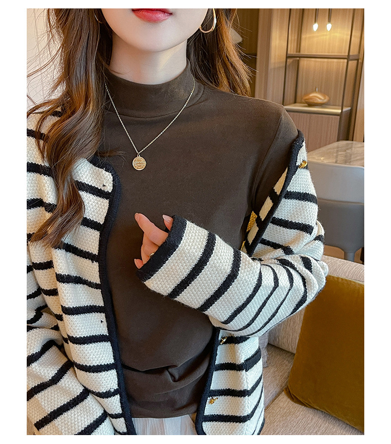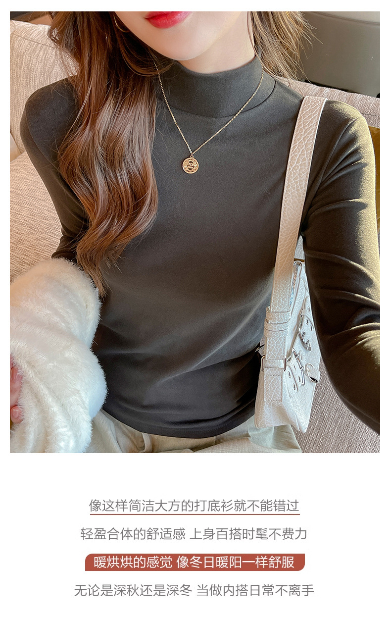 가을과 겨울 마이크로 미디 벨벳 세미 하이 칼라 바닥 셔츠 여성 인테리어, 미드 칼라 긴 소매 새 외형 어깨 티셔츠스토어 가기