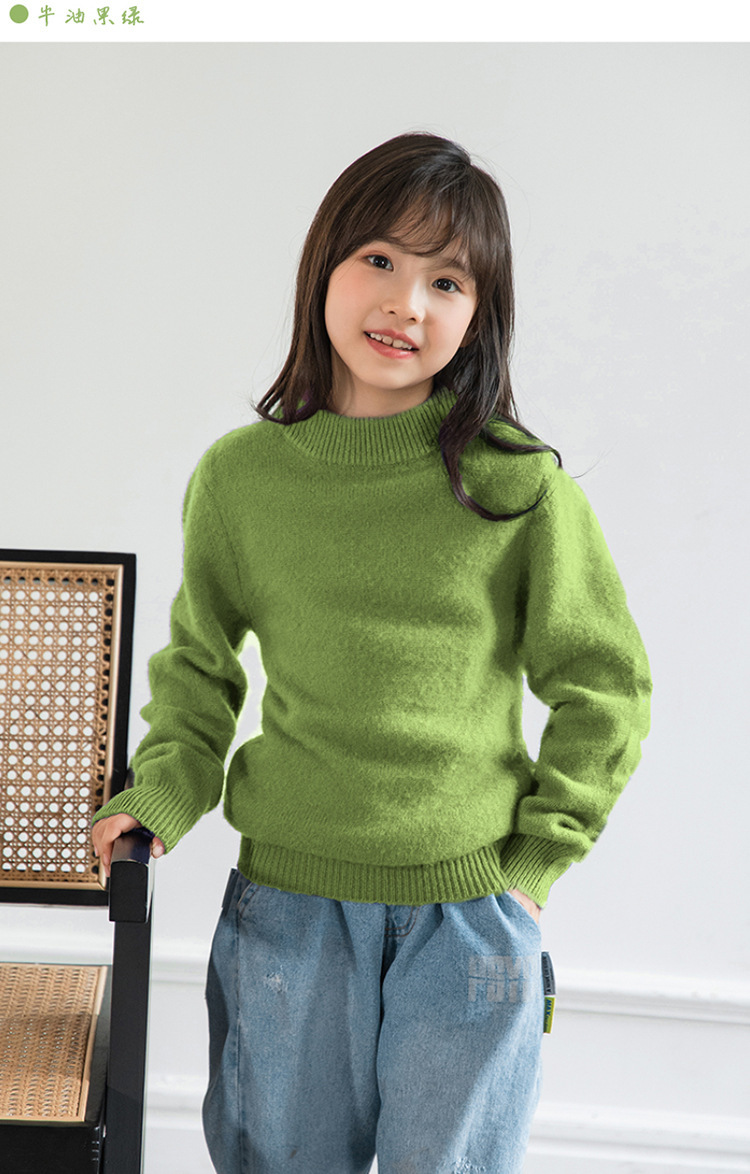 양모 반 터틀넥 어린이 캐시미어 스웨터 소년 및 소녀 Bottoming 니트웨어 미중 및 대형 어린이를위한 두꺼운 스웨터