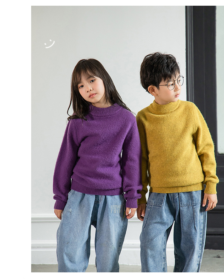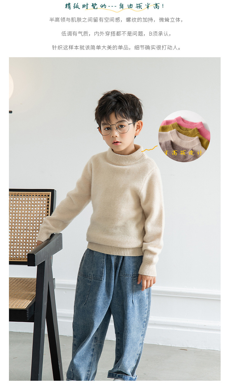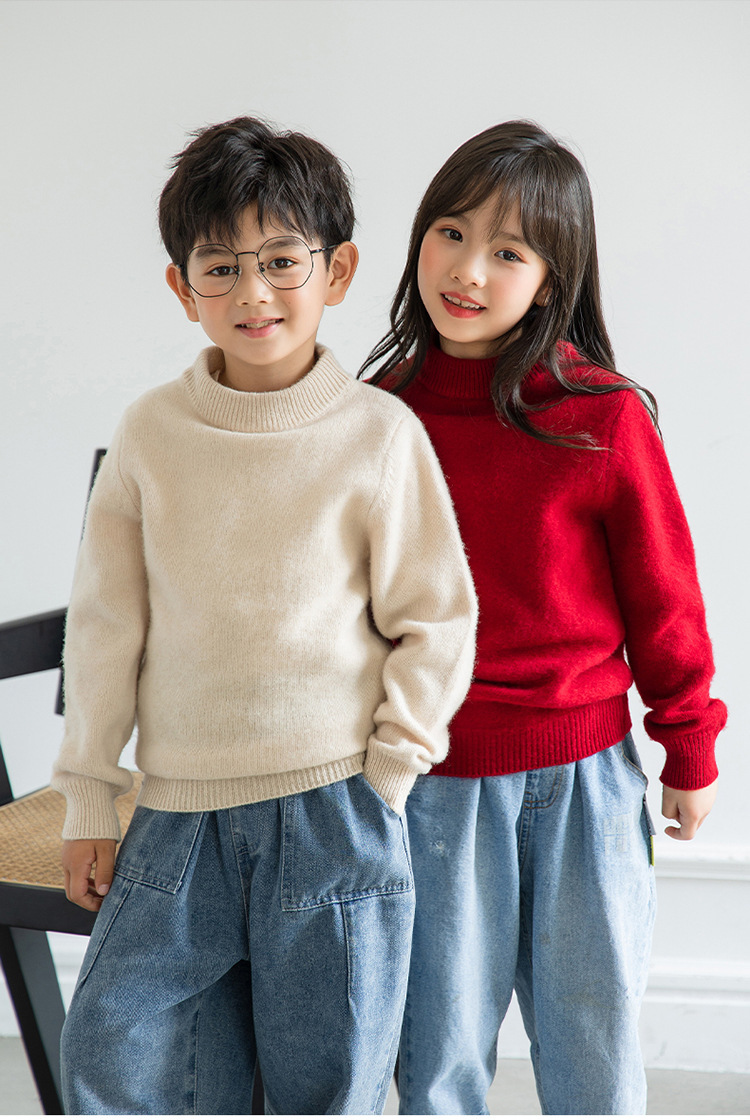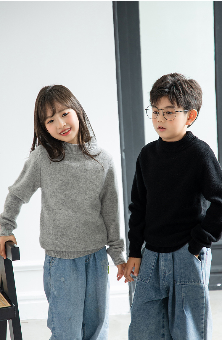 양모 반 터틀넥 어린이 캐시미어 스웨터 소년 및 소녀 Bottoming 니트웨어 미중 및 대형 어린이를위한 두꺼운 스웨터스토어 가기