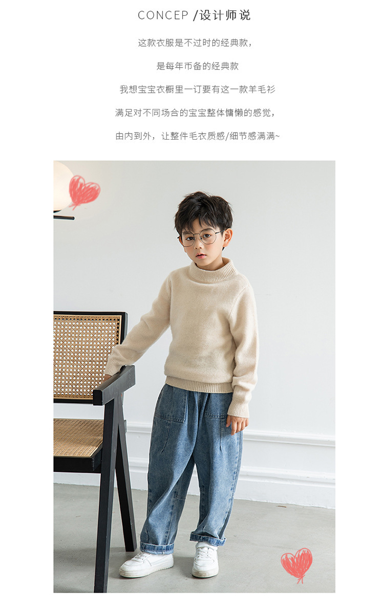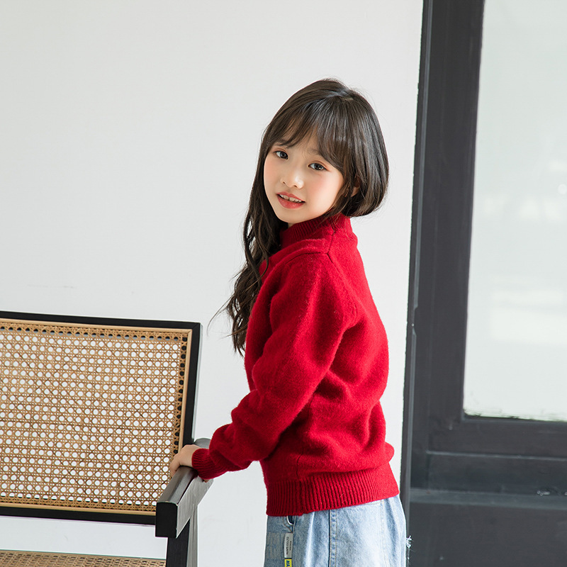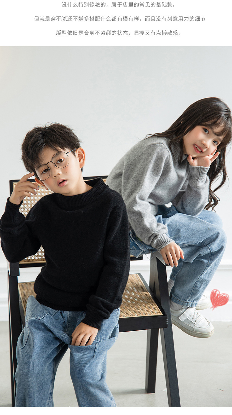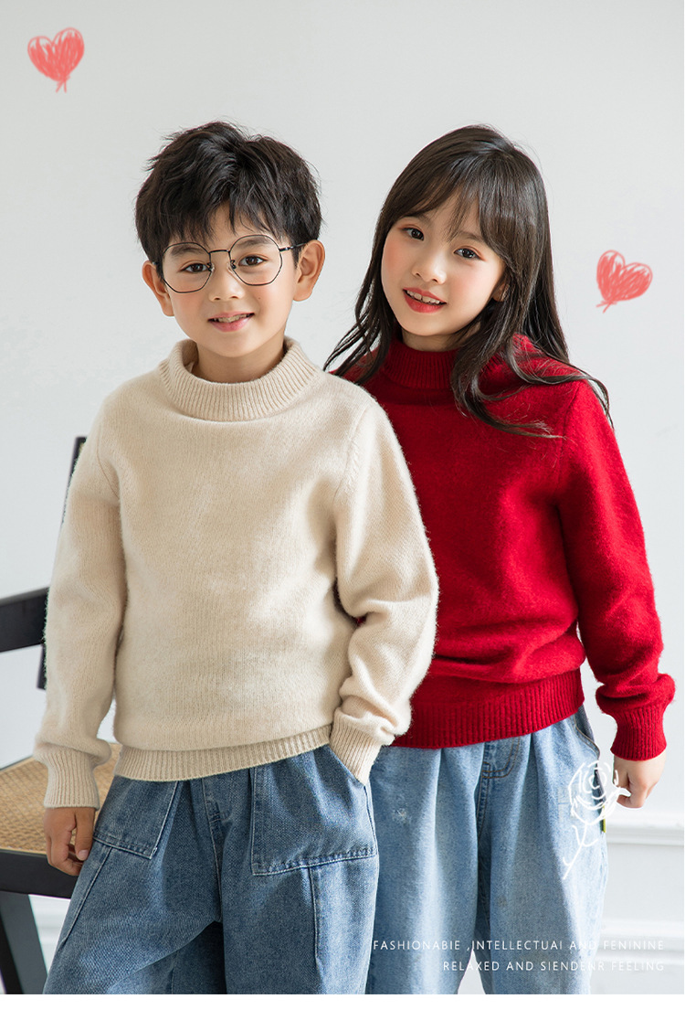 양모 반 터틀넥 어린이 캐시미어 스웨터 소년 및 소녀 Bottoming 니트웨어 미중 및 대형 어린이를위한 두꺼운 스웨터스토어 가기