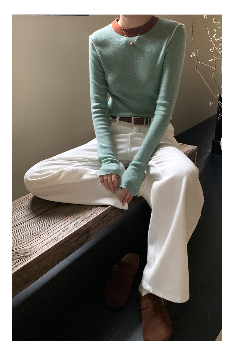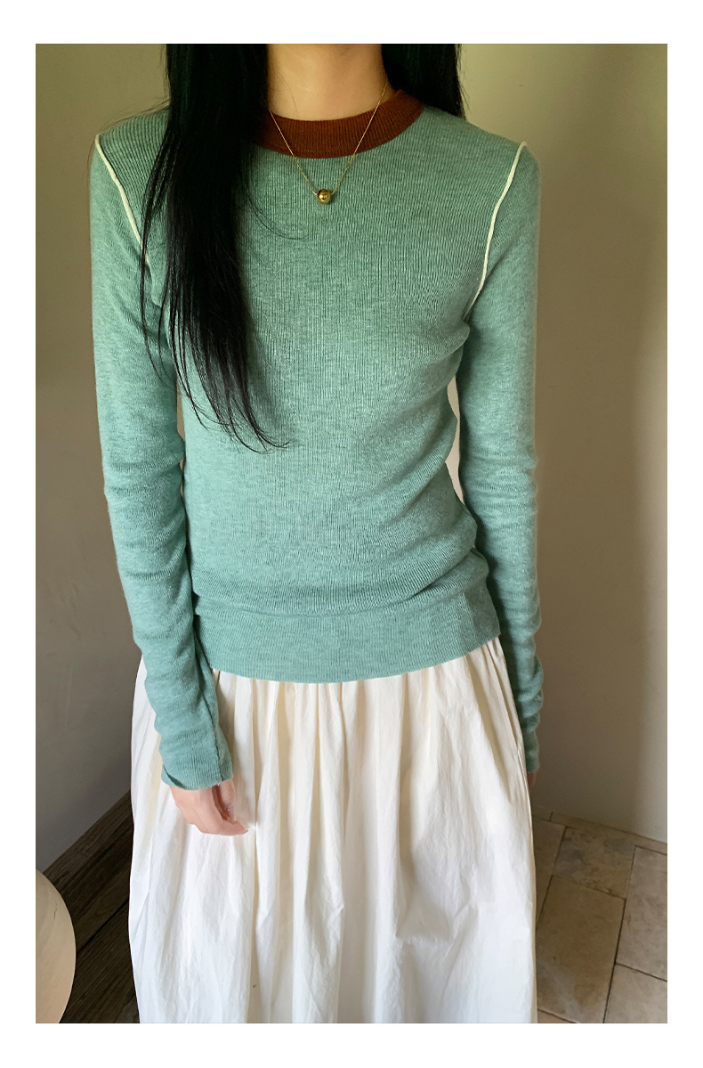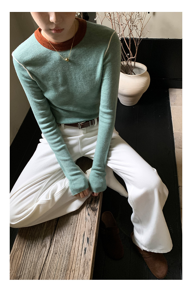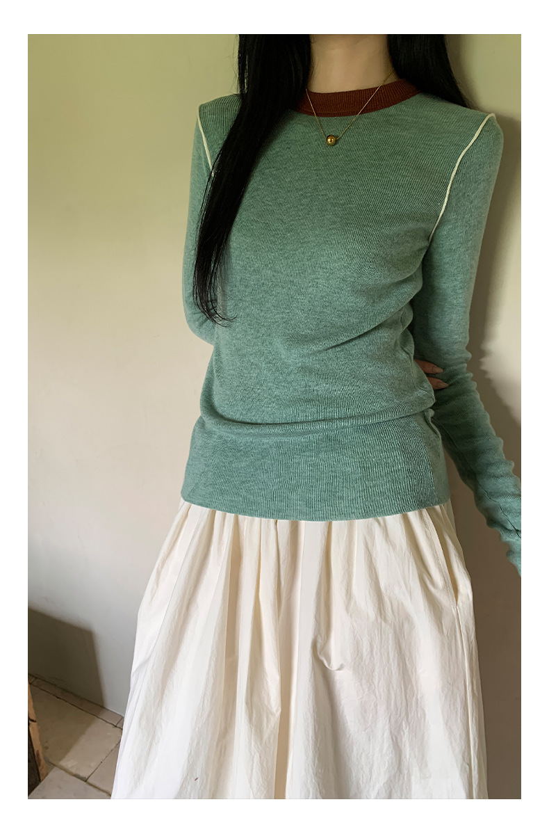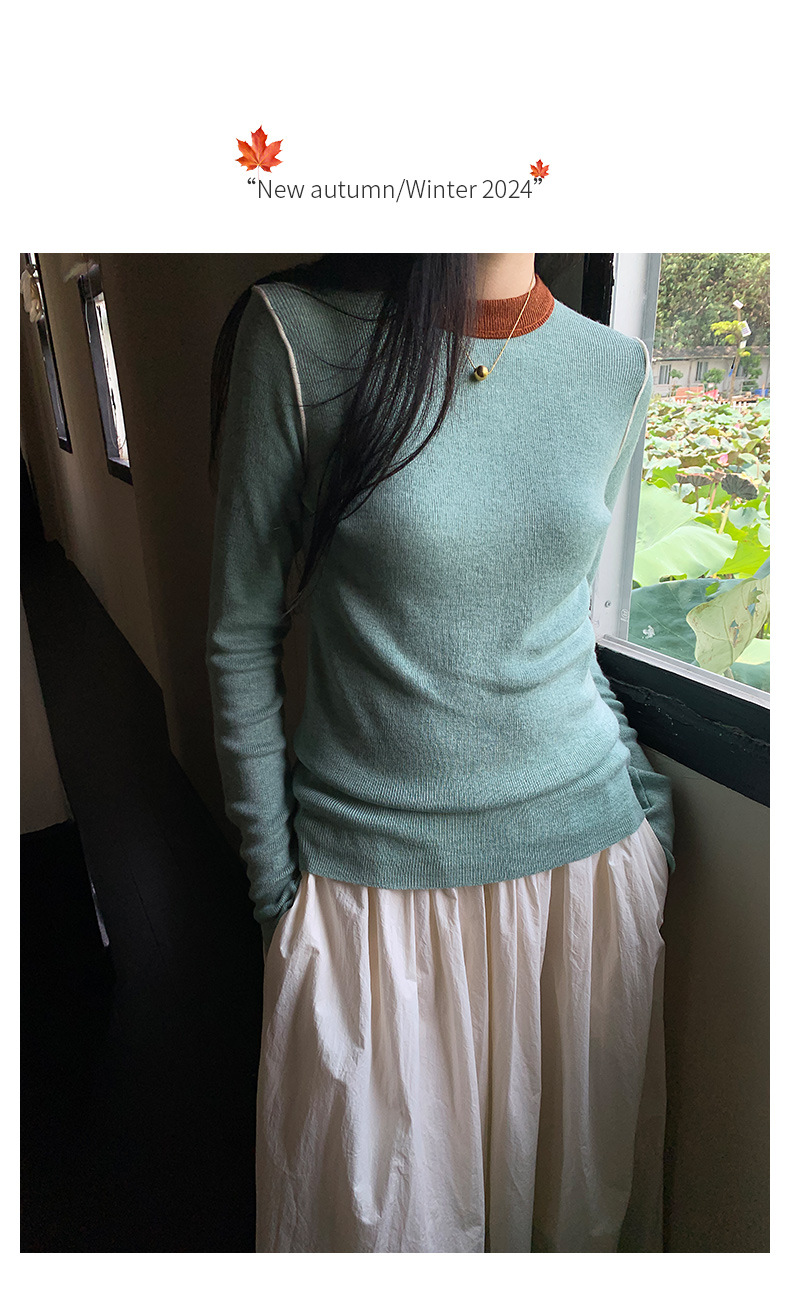 Yiershan Korean 대비 색상 다목적 슬림 하프 터틀넥 스웨터 여성용 오른쪽 어깨 슬리밍 이너웨어 탑 0189스토어 가기