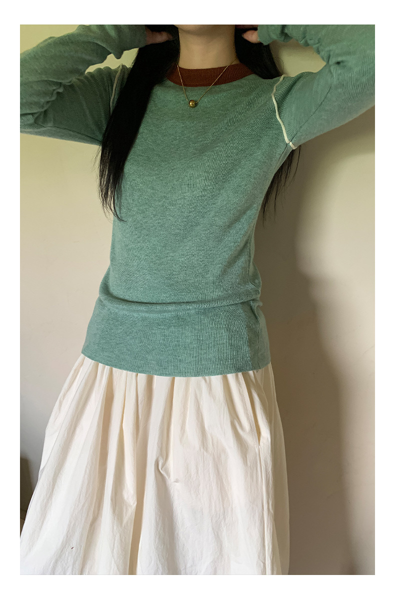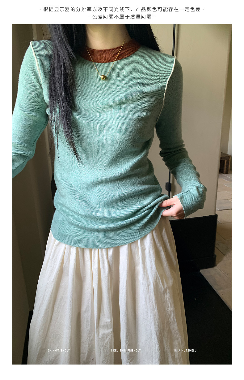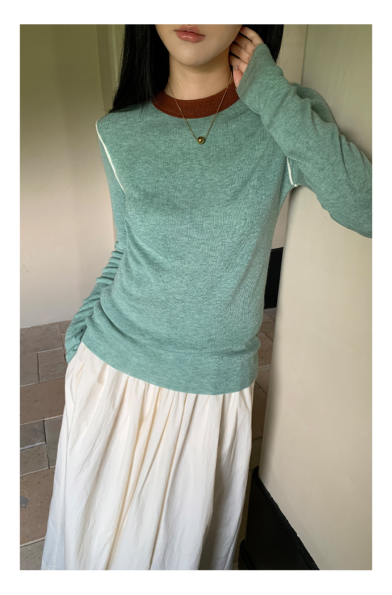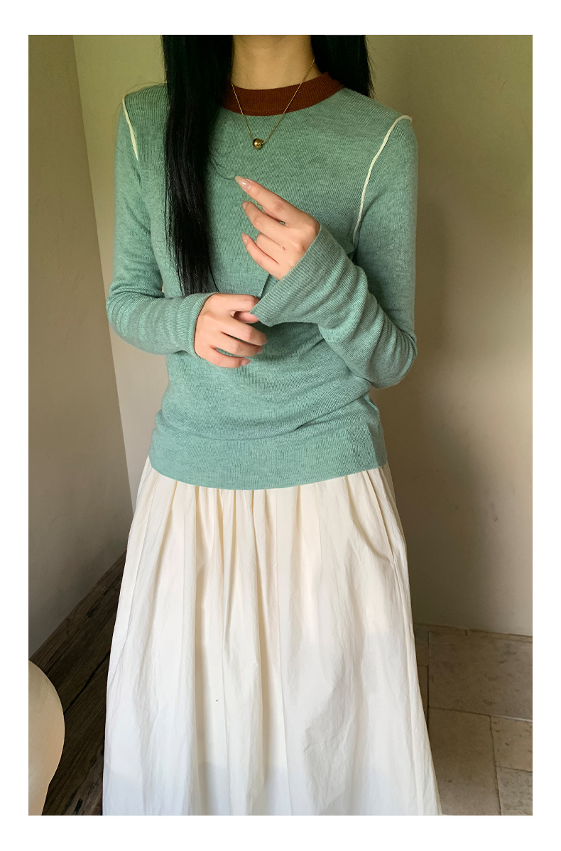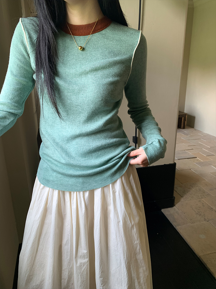 Yiershan Korean 대비 색상 다목적 슬림 하프 터틀넥 스웨터 여성용 오른쪽 어깨 슬리밍 이너웨어 탑 0189스토어 가기