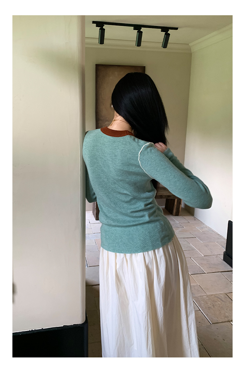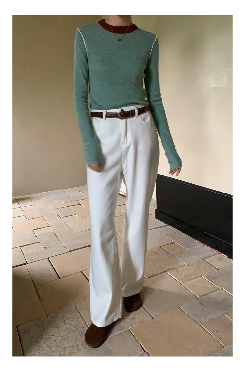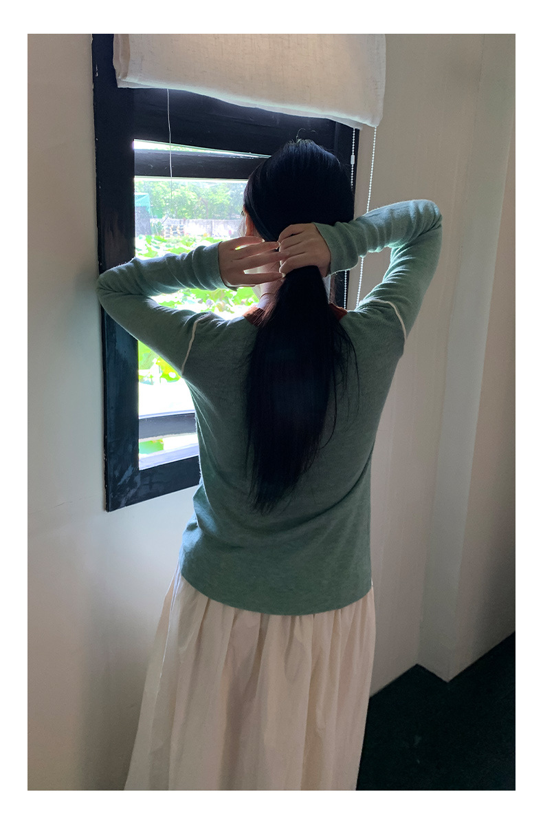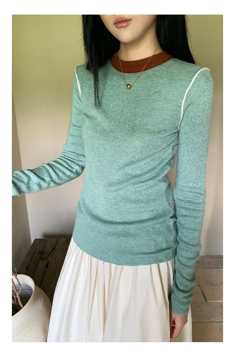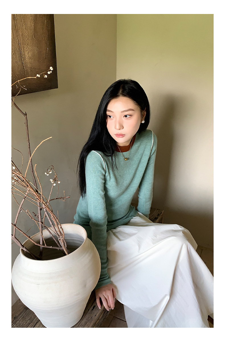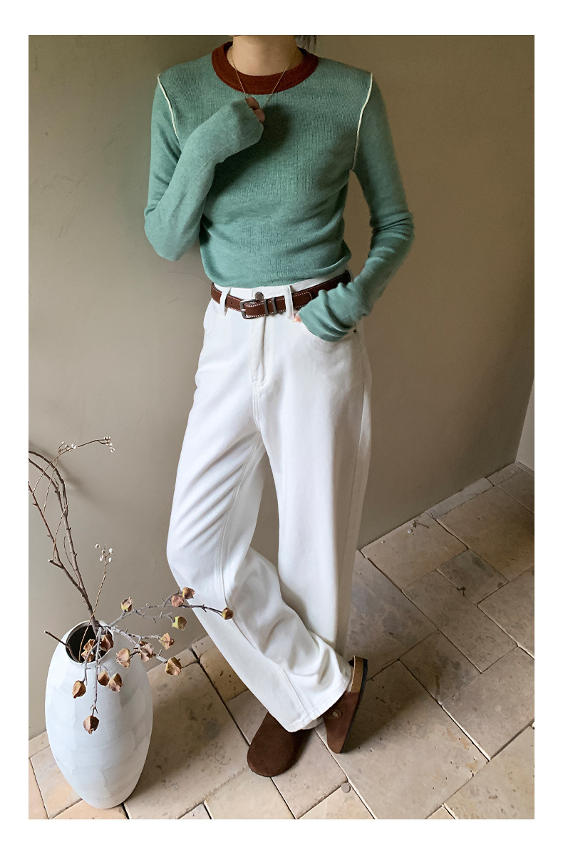 Yiershan Korean 대비 색상 다목적 슬림 하프 터틀넥 스웨터 여성용 오른쪽 어깨 슬리밍 이너웨어 탑 0189스토어 가기