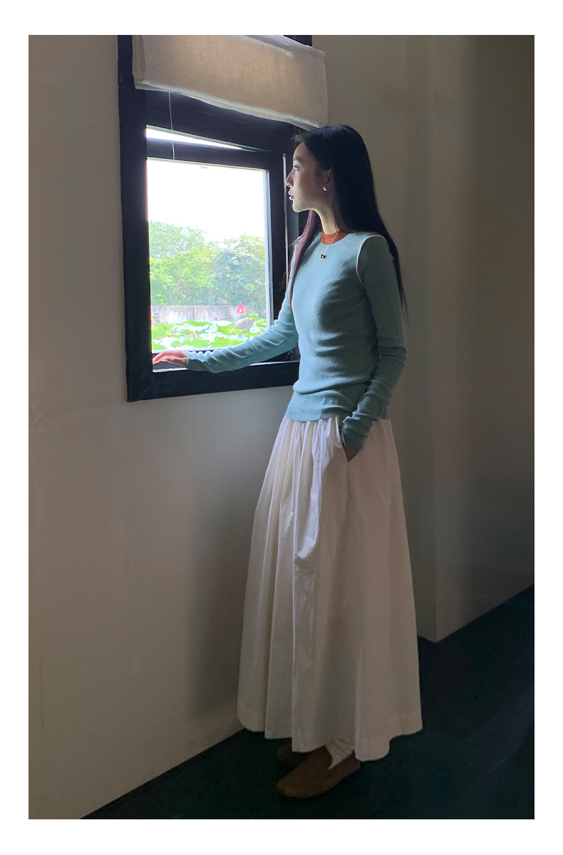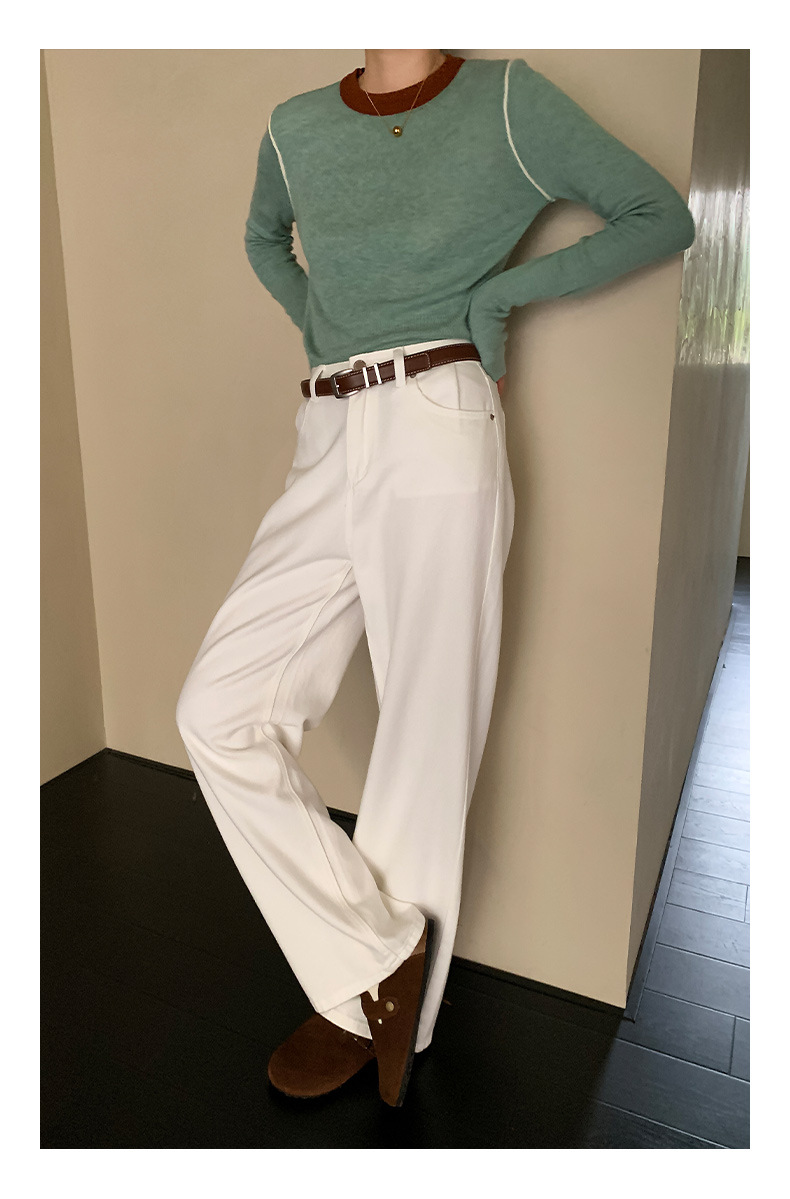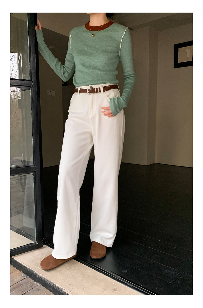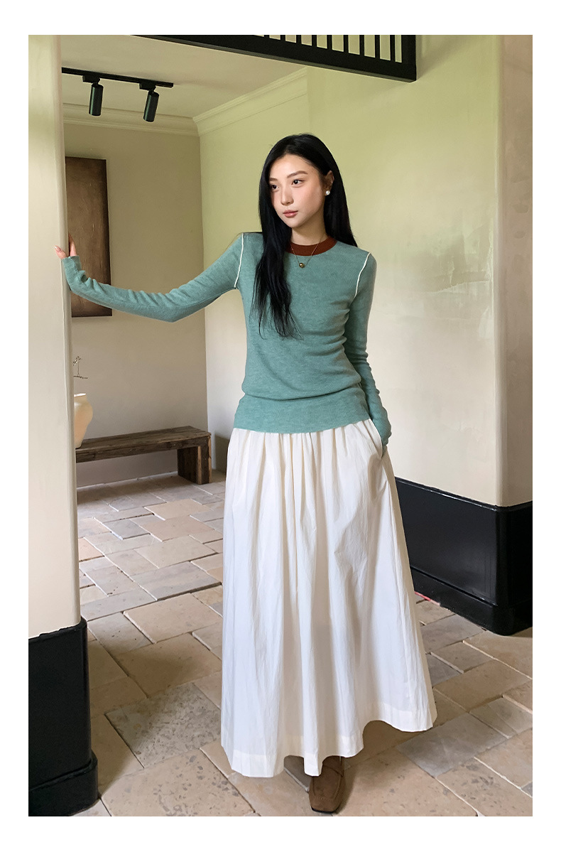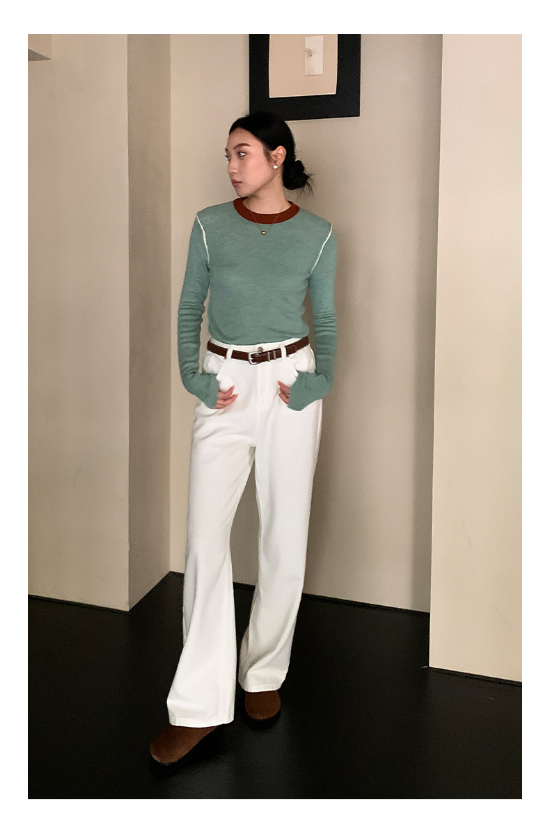 Yiershan Korean 대비 색상 다목적 슬림 하프 터틀넥 스웨터 여성용 오른쪽 어깨 슬리밍 이너웨어 탑 0189스토어 가기