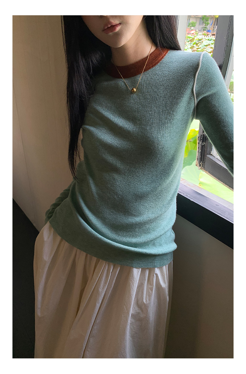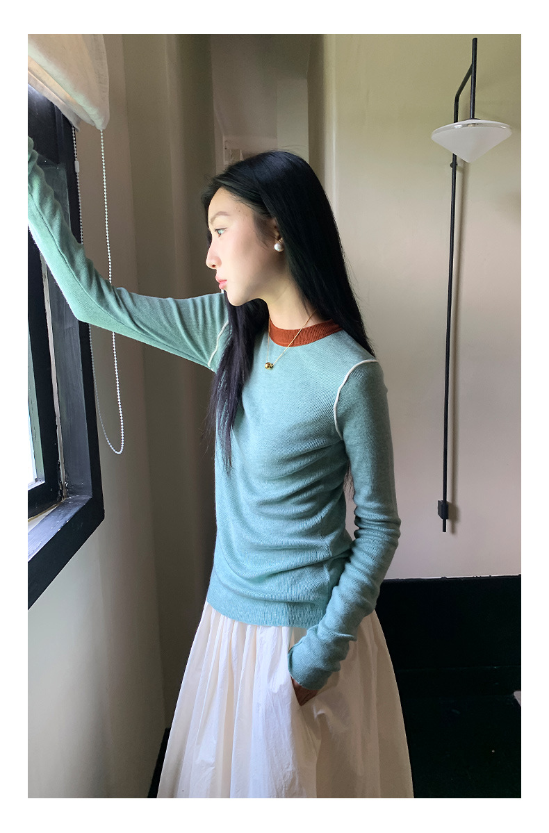 Yiershan Korean 대비 색상 다목적 슬림 하프 터틀넥 스웨터 여성용 오른쪽 어깨 슬리밍 이너웨어 탑 0189