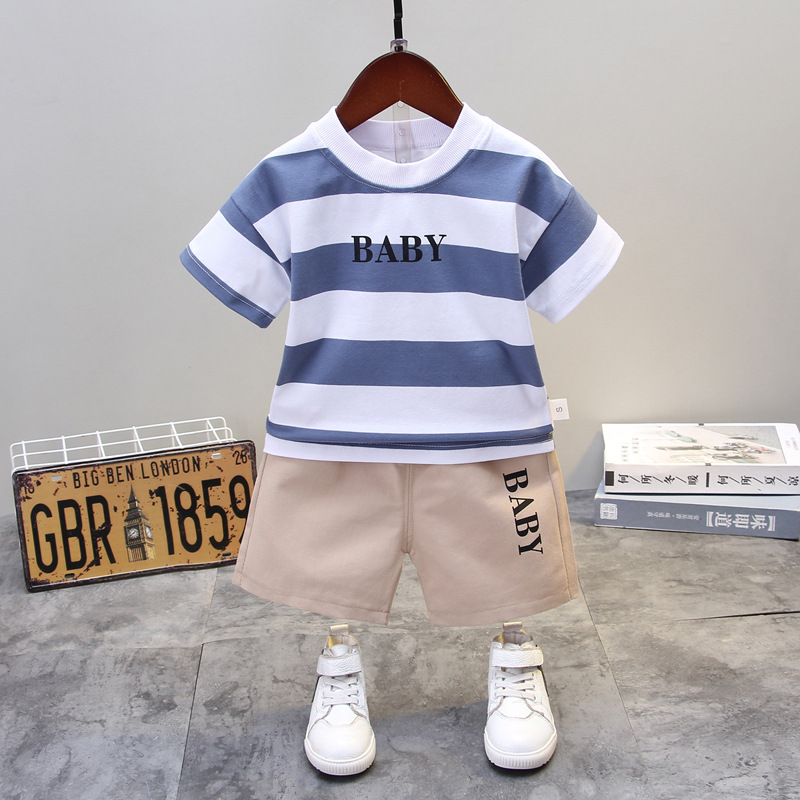 아기 여름 옷 어린이 짧은 소매 2024 새로운 011-3 세 소년 세트 아기 옷면 반바지 얇은스토어 가기