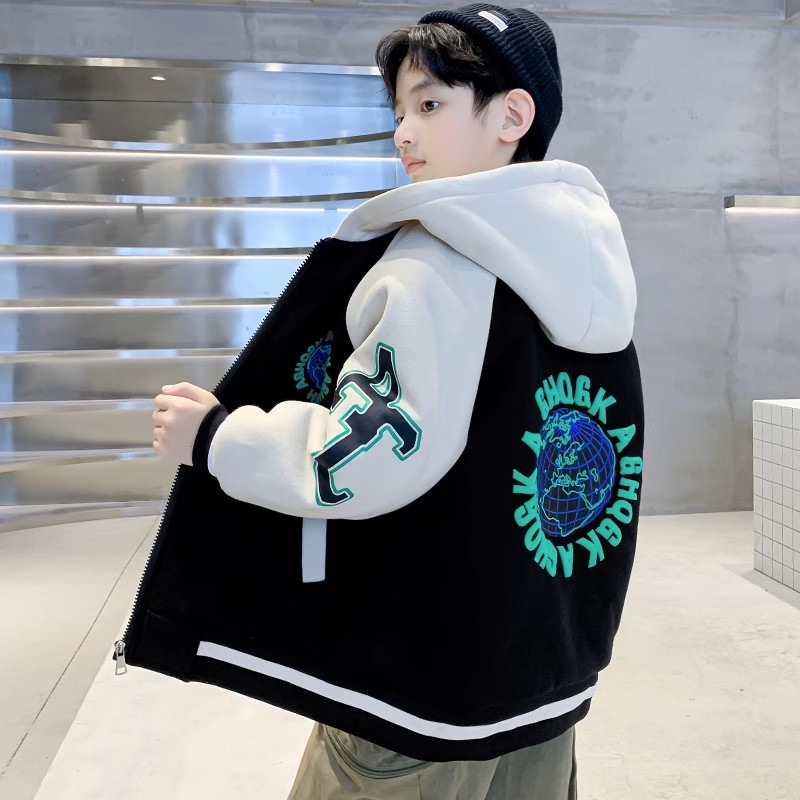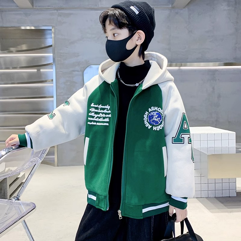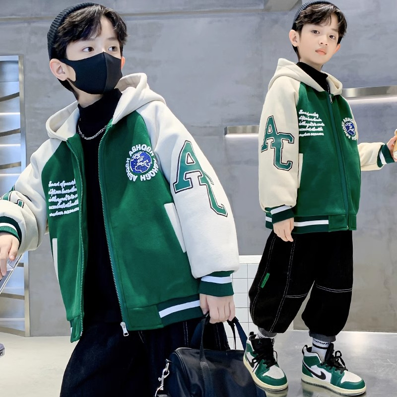 소년 코트 2024 년 가을 겨울 새로운 유행 중첩 어린이 서양식 가을 옷 어린이 스포츠 소년 기모 야구 세트스토어 가기
