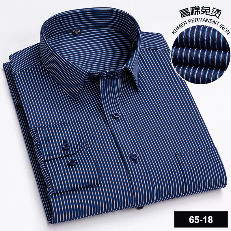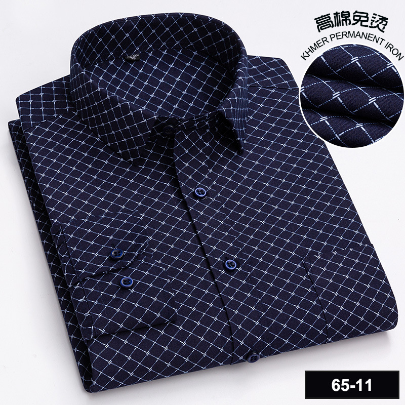 가을 새 격자 무늬 셔츠 남자의 긴팔 얇은 중년 캐주얼 셔츠 줄무늬 아빠의 65 면 셔츠스토어 가기