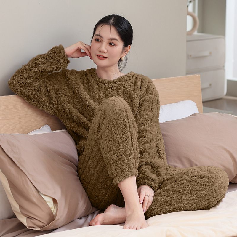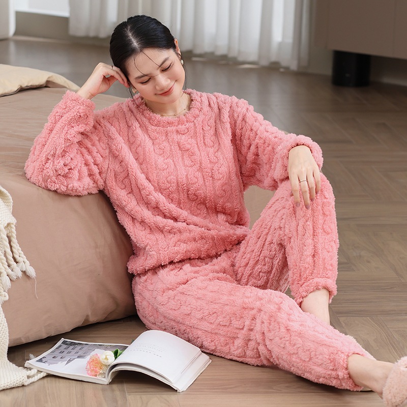 일본과 한국 스타일 산호 벨벳 따뜻한 파자마 여성의 새로운 자카드 가을과 겨울 두꺼운 느슨한 벨벳 홈 의류 세트