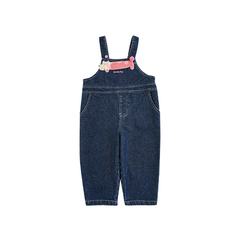Wurib Girl's 데님 Suspenders 가을 어린이 귀여운 사탕 개 수리 타월 자수 캐주얼 유행 바지