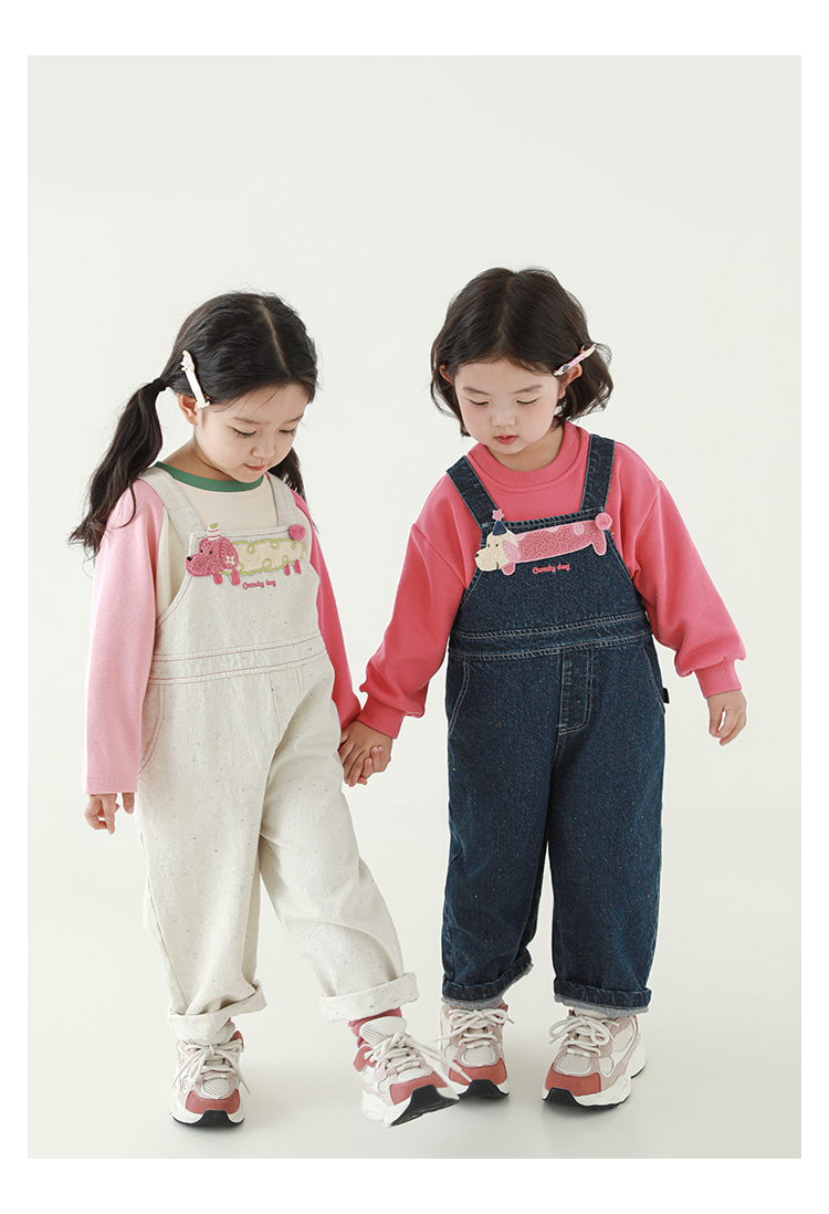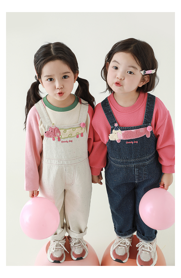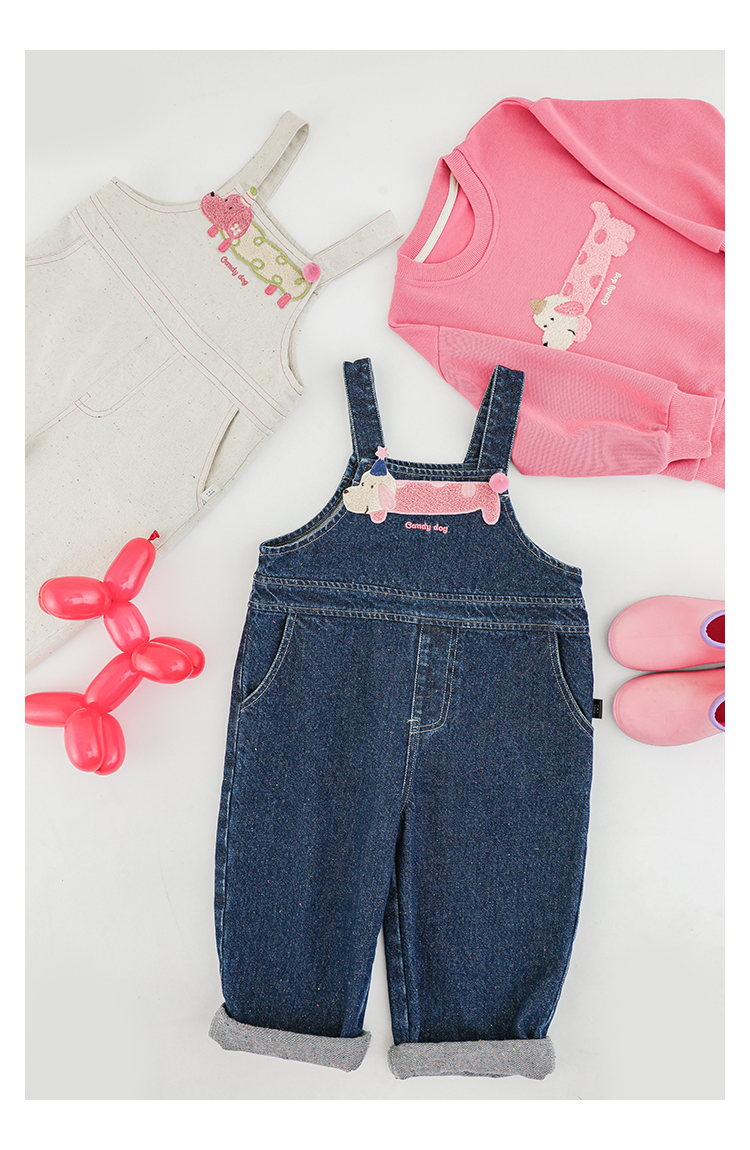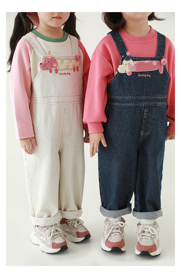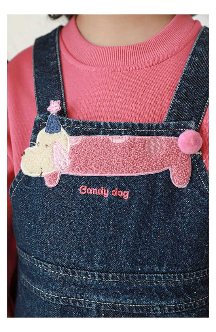 Wurib Girl's 데님 Suspenders 가을 어린이 귀여운 사탕 개 수리 타월 자수 캐주얼 유행 바지스토어 가기