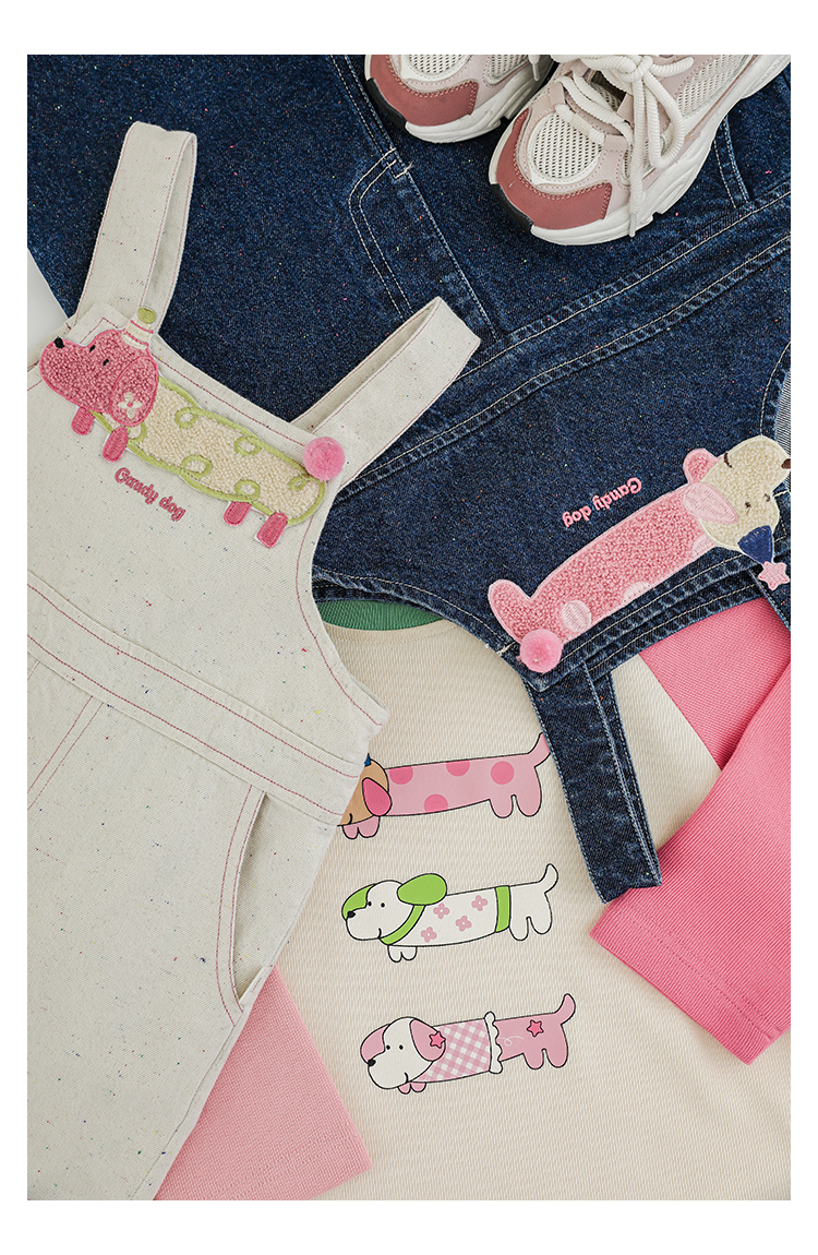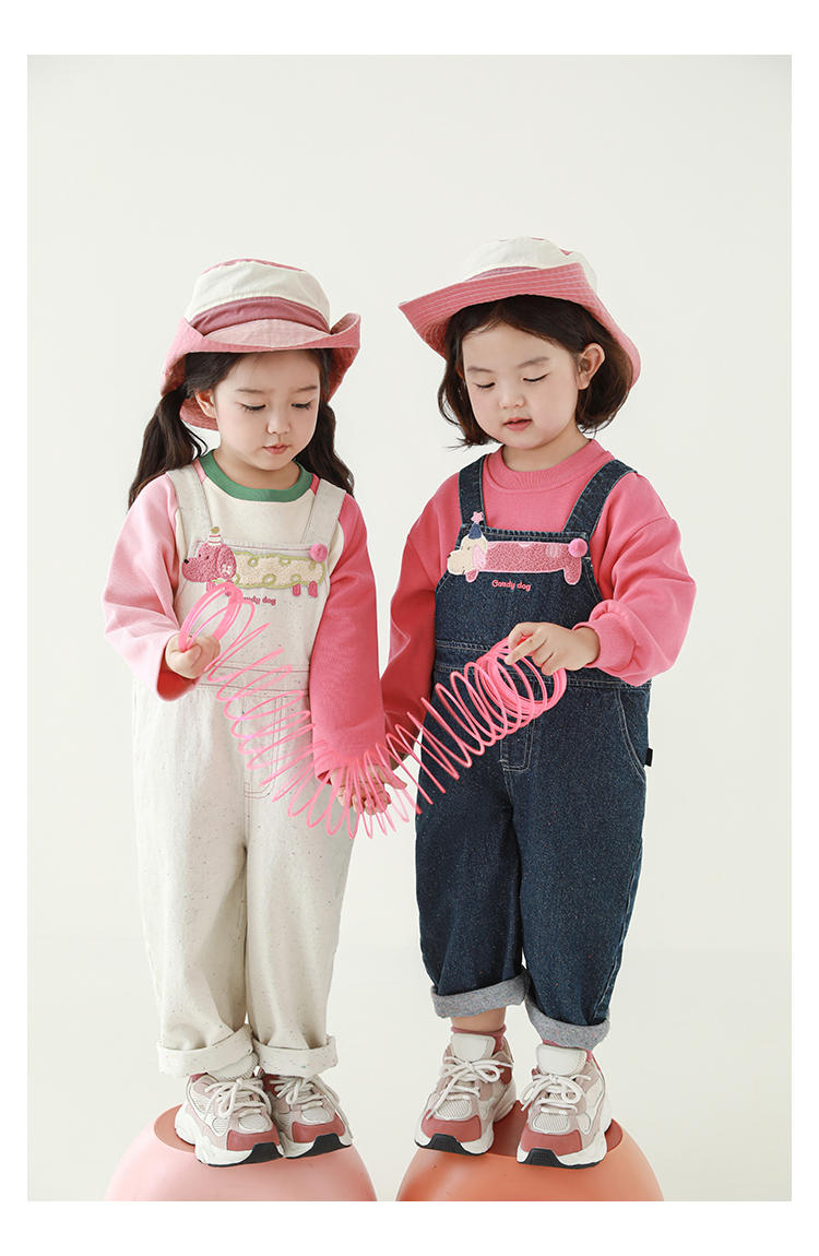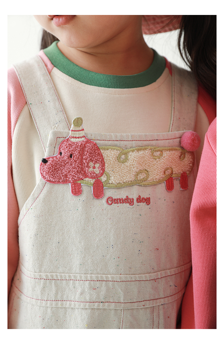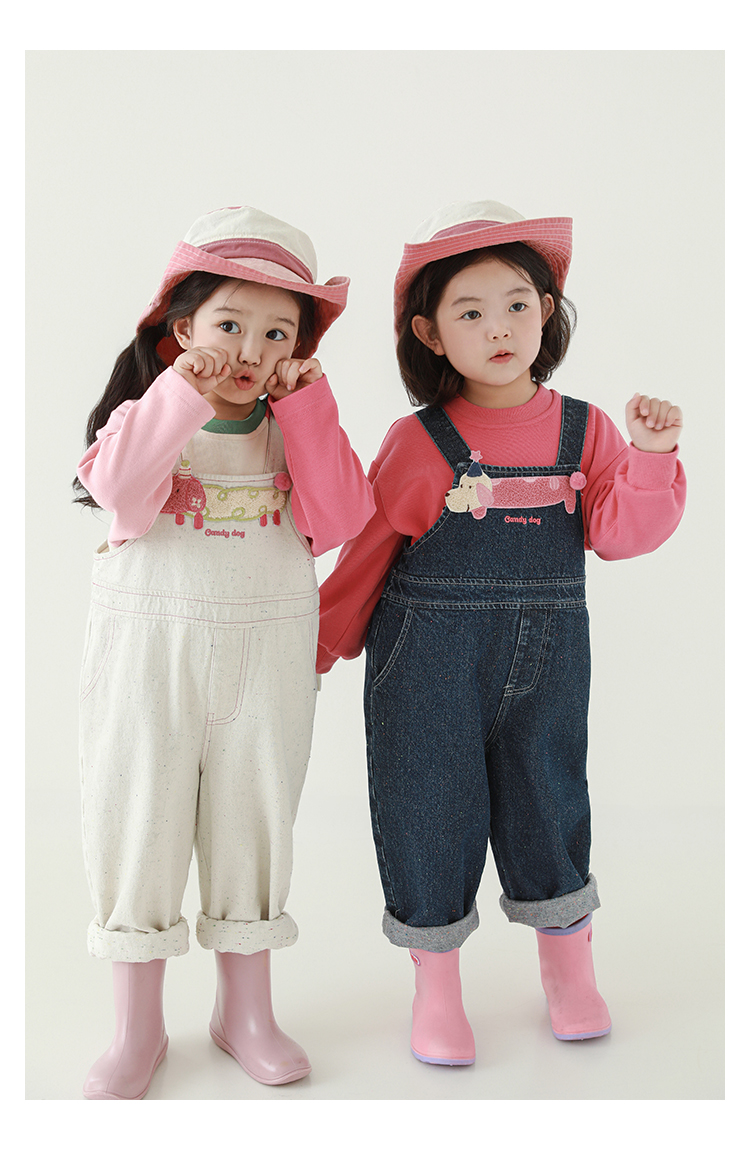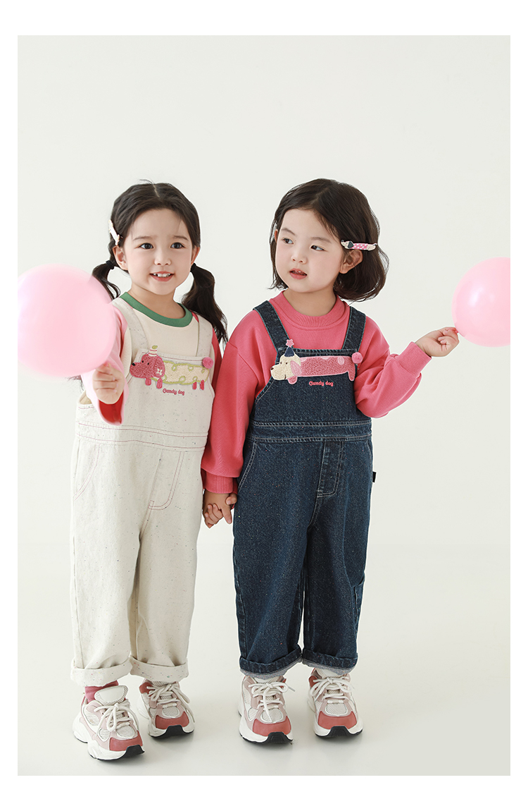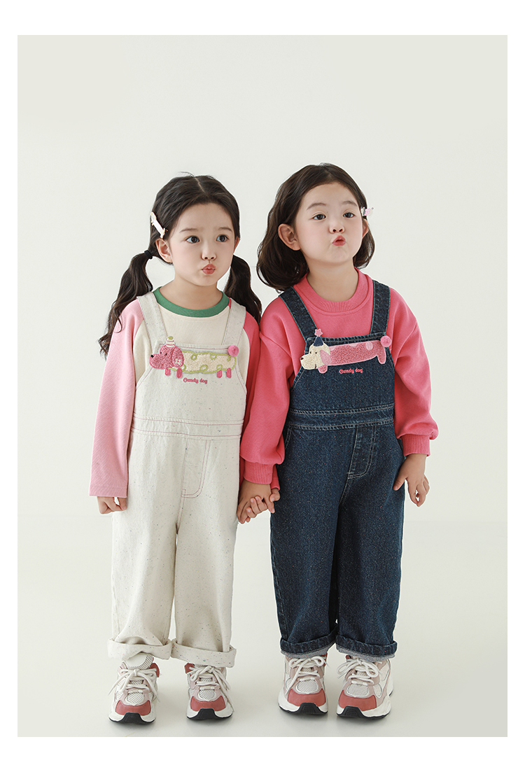 Wurib Girl's 데님 Suspenders 가을 어린이 귀여운 사탕 개 수리 타월 자수 캐주얼 유행 바지스토어 가기