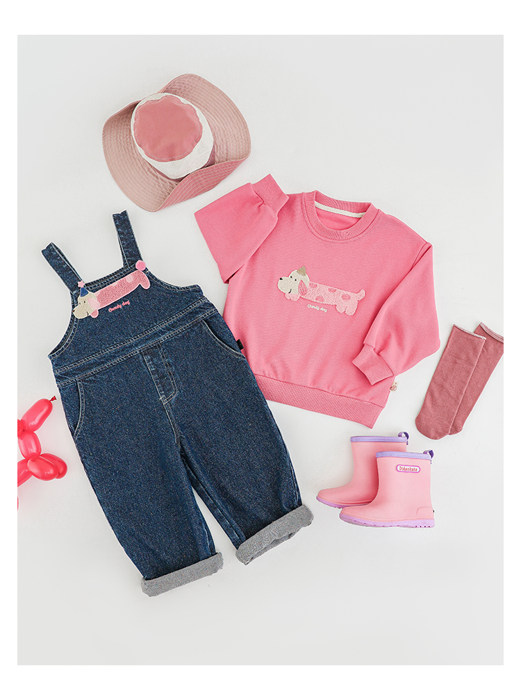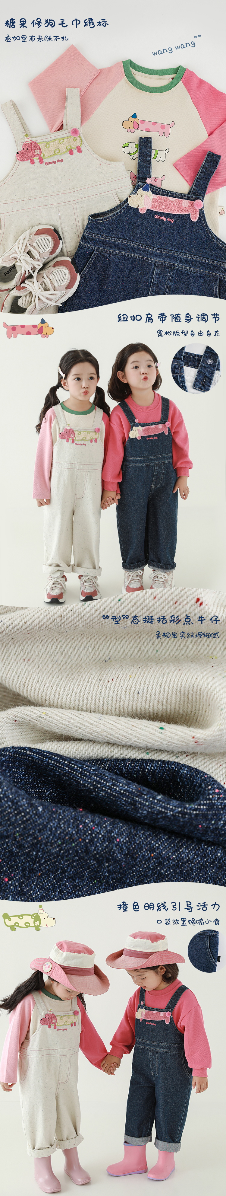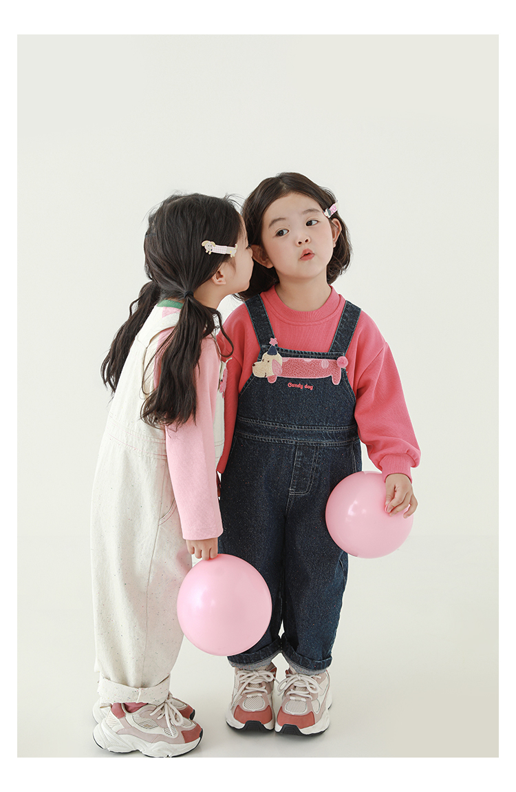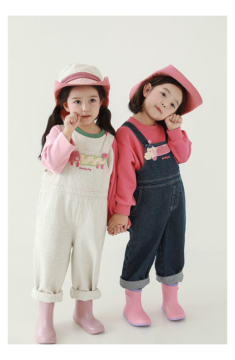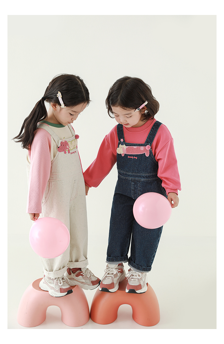 Wurib Girl's 데님 Suspenders 가을 어린이 귀여운 사탕 개 수리 타월 자수 캐주얼 유행 바지스토어 가기