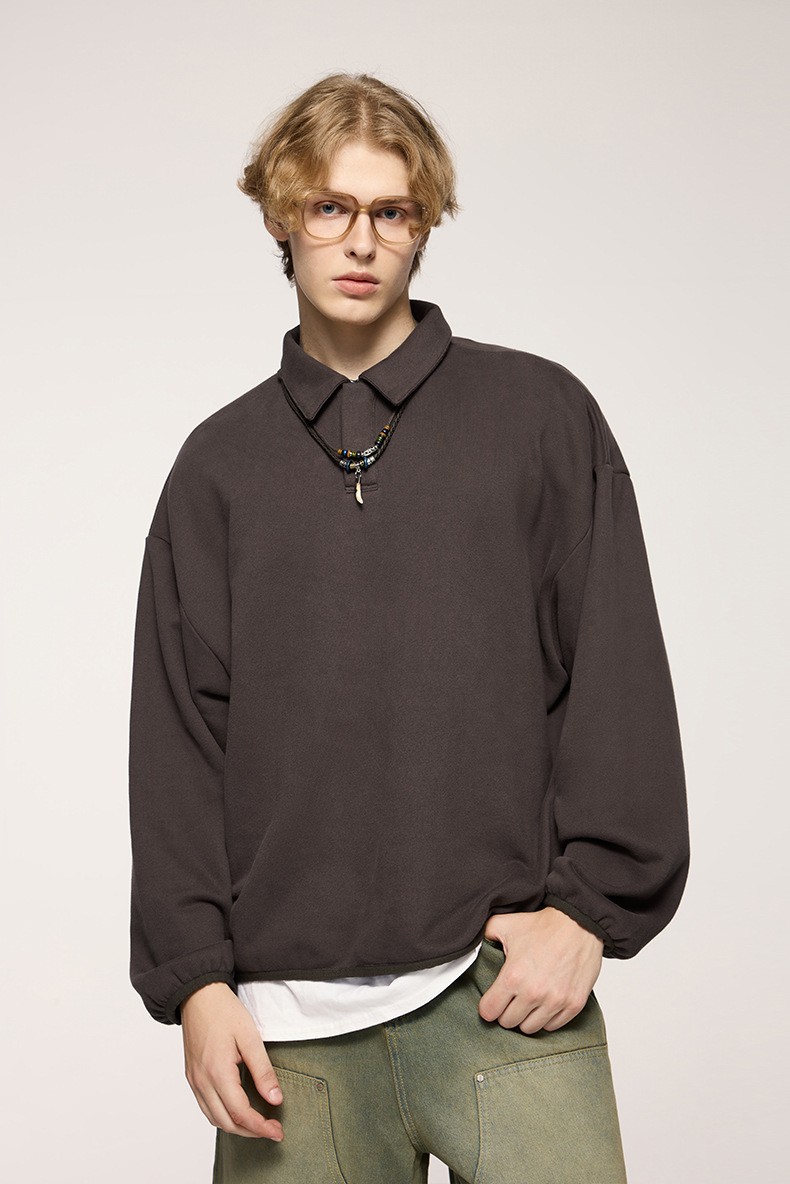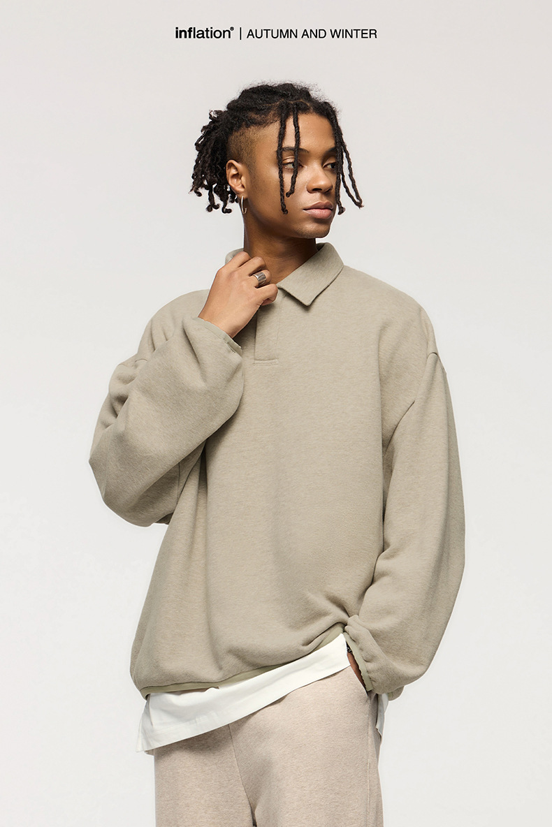 제이전 남성복 | 포그 플리스 스웨트셔츠 25 겨울 트렌드 브랜드 신상품 아메리칸 스타일 폴로 칼라 풀오버 탑