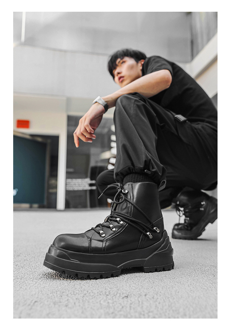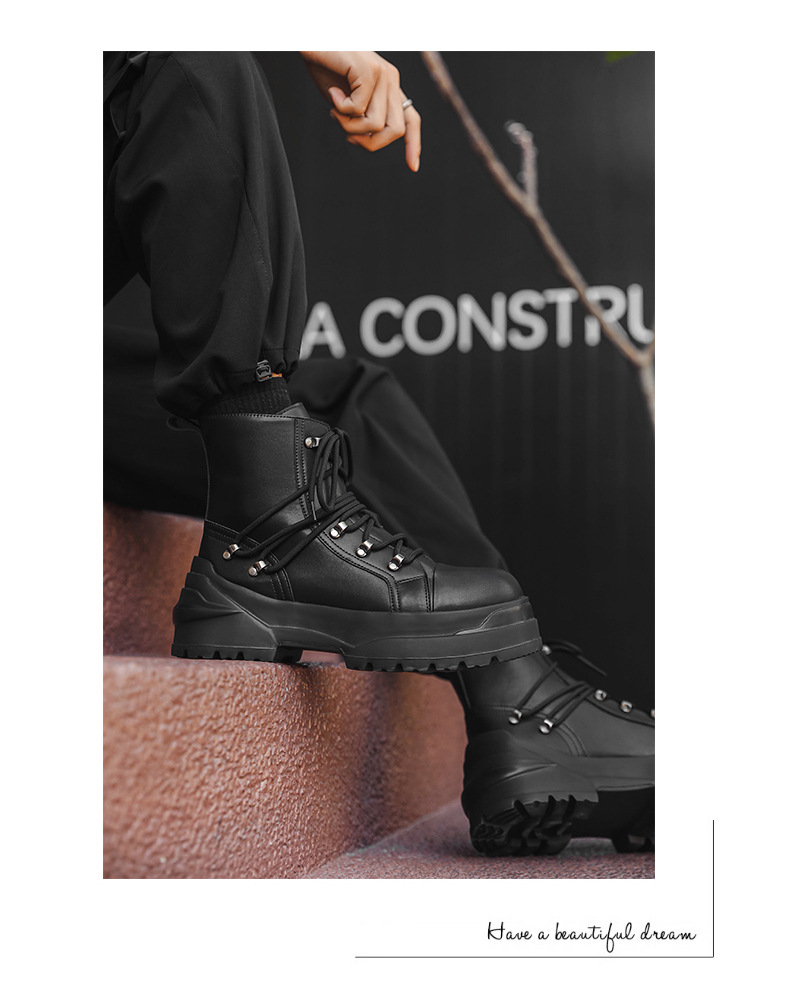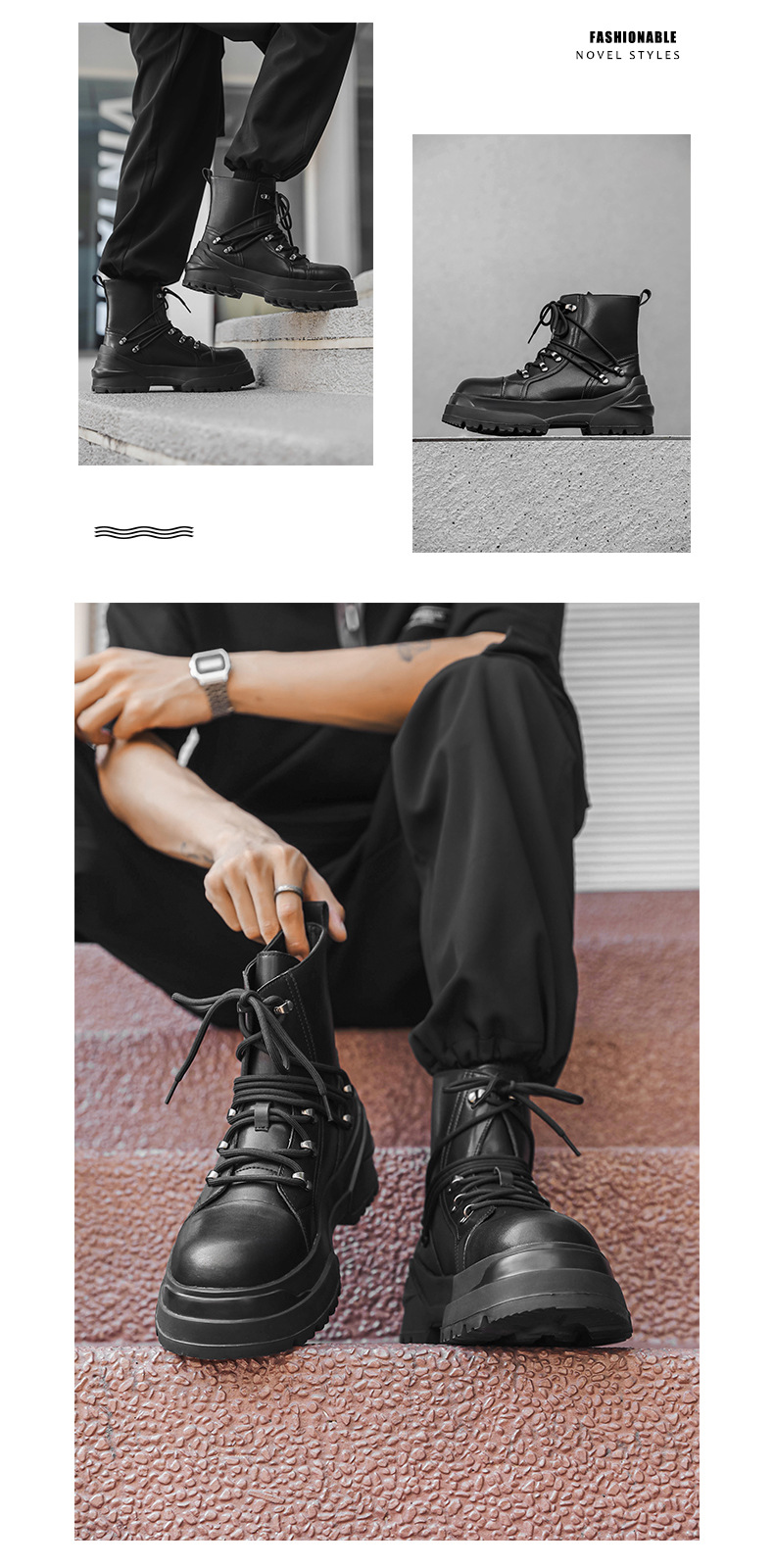 가을 2024 새로운 영국 복고풍 작업복 부츠 퓨어 블랙 오토바이 스타일 남성 부츠 유행 올매치 두꺼운 힐 라운드 헤드 미들 튜브스토어 가기
