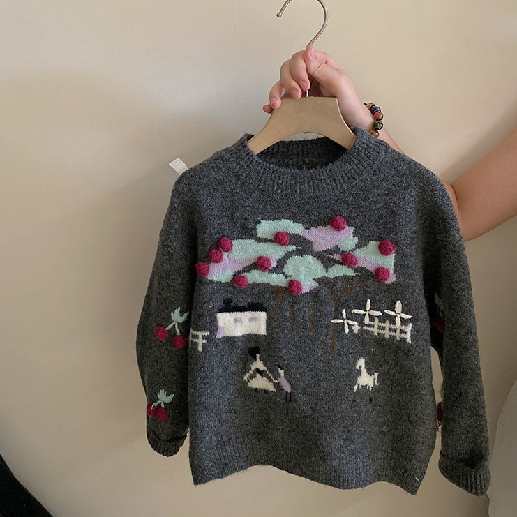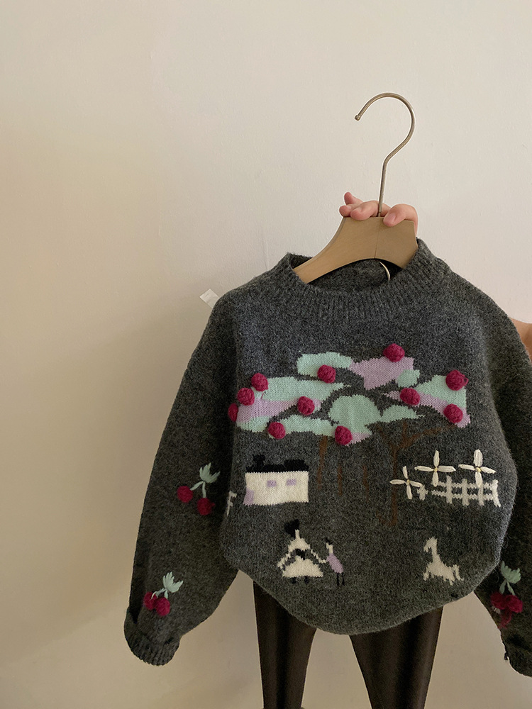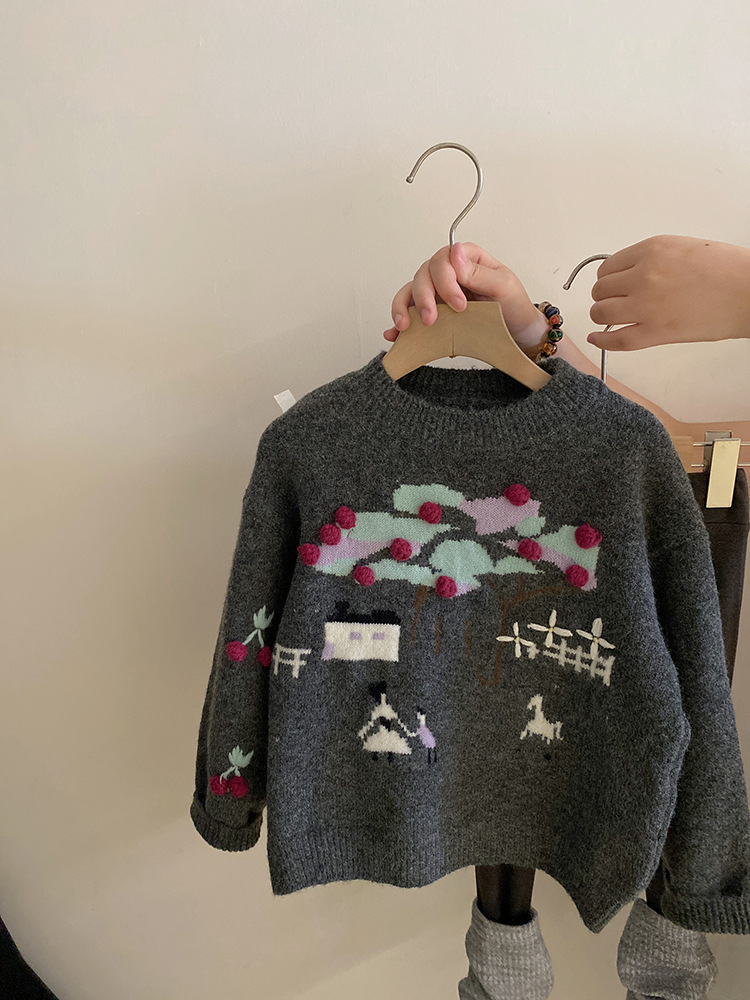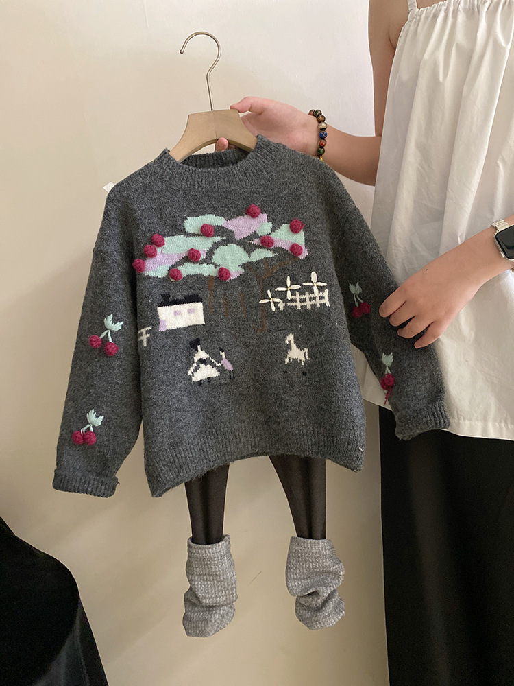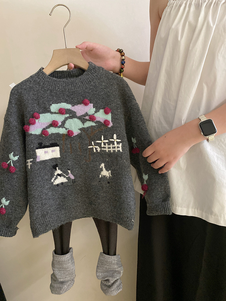 소녀 가을 니트 카디건 스웨터 2024 어린이 만화 가을 최고의 어린이 스웨터 레깅스 세트스토어 가기