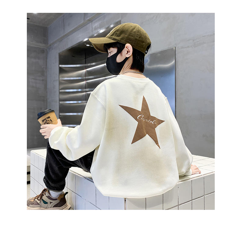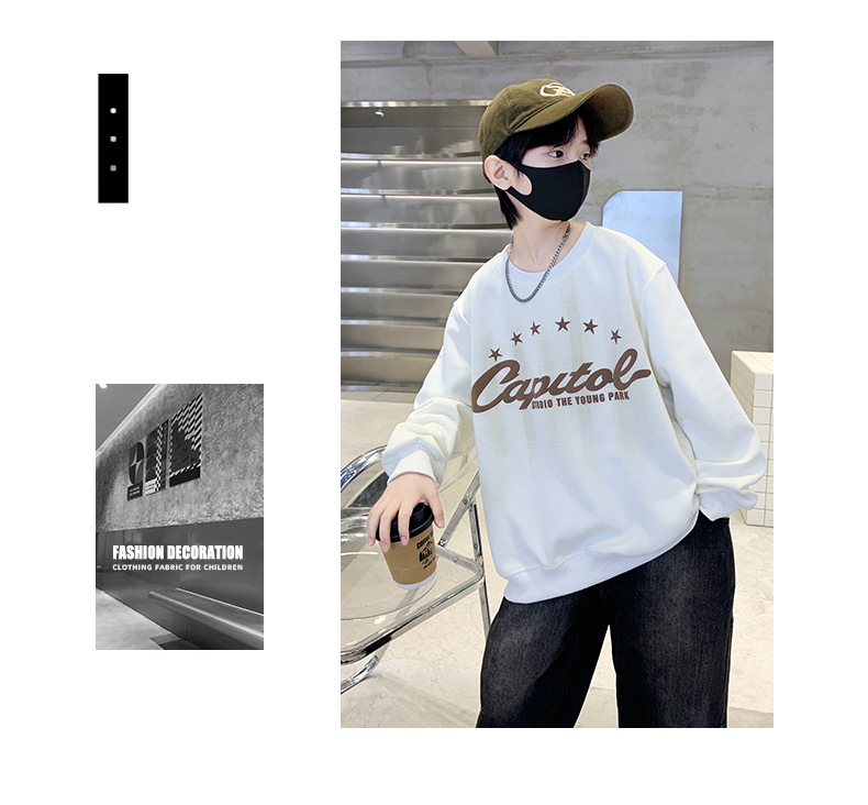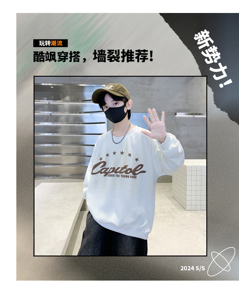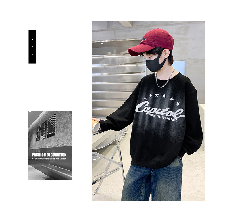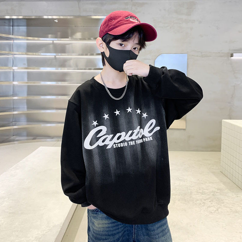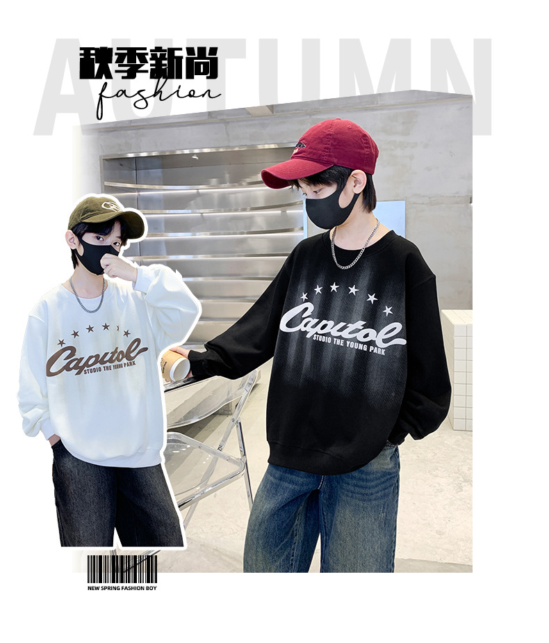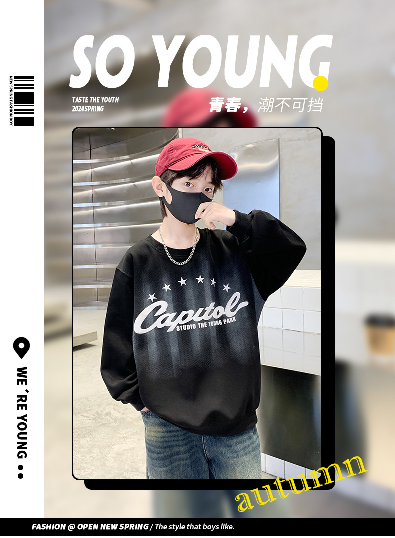 어린이 착용 소년 봄과 가을 미국 편지 라운드 넥 스웨트 셔츠 2024 새로운 스타일 미드 빅 어린이 봄 서양식 봄 패션스토어 가기