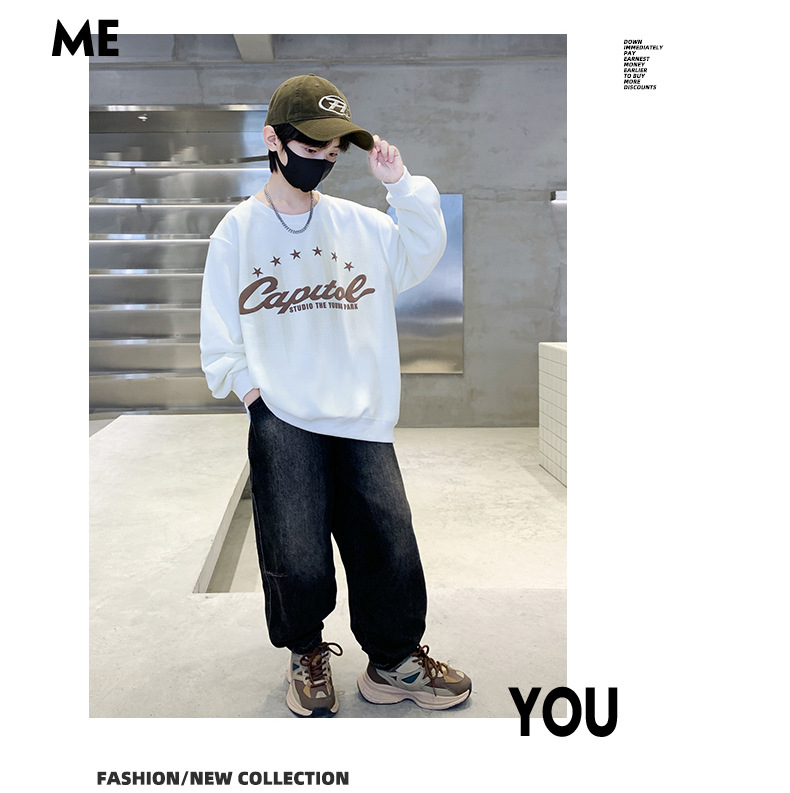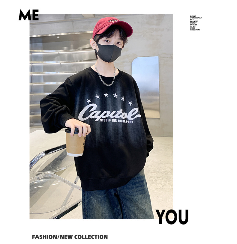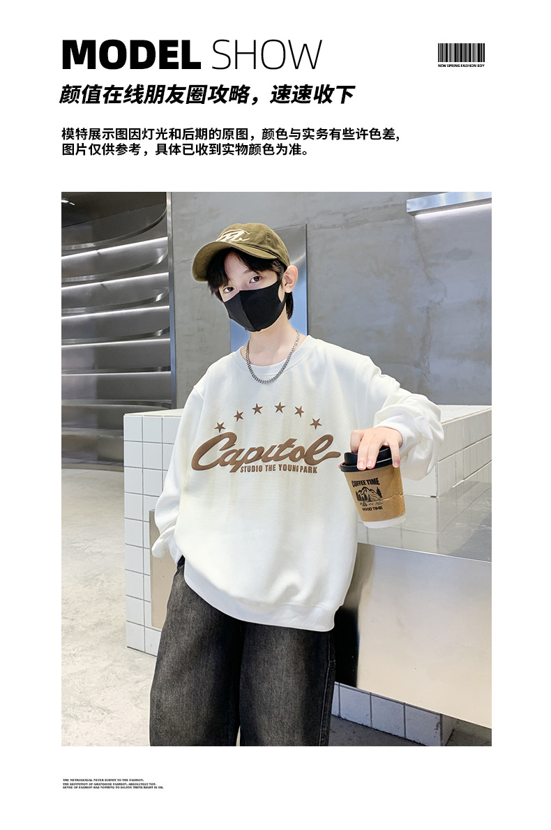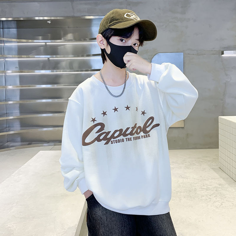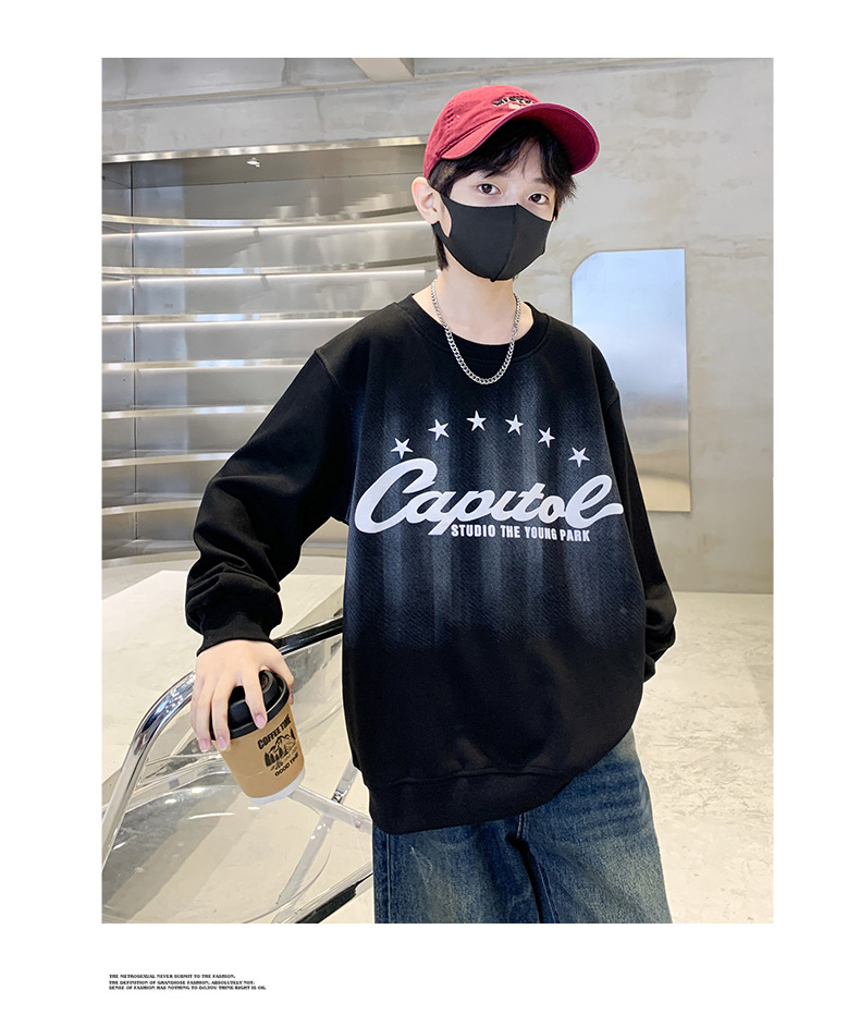 어린이 착용 소년 봄과 가을 미국 편지 라운드 넥 스웨트 셔츠 2024 새로운 스타일 미드 빅 어린이 봄 서양식 봄 패션