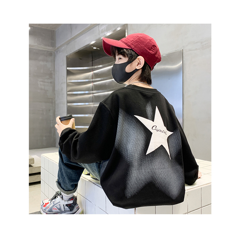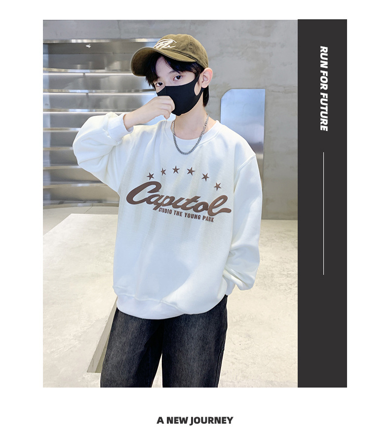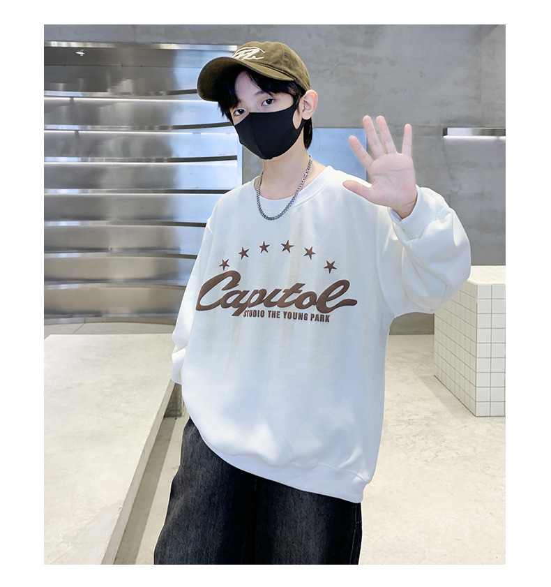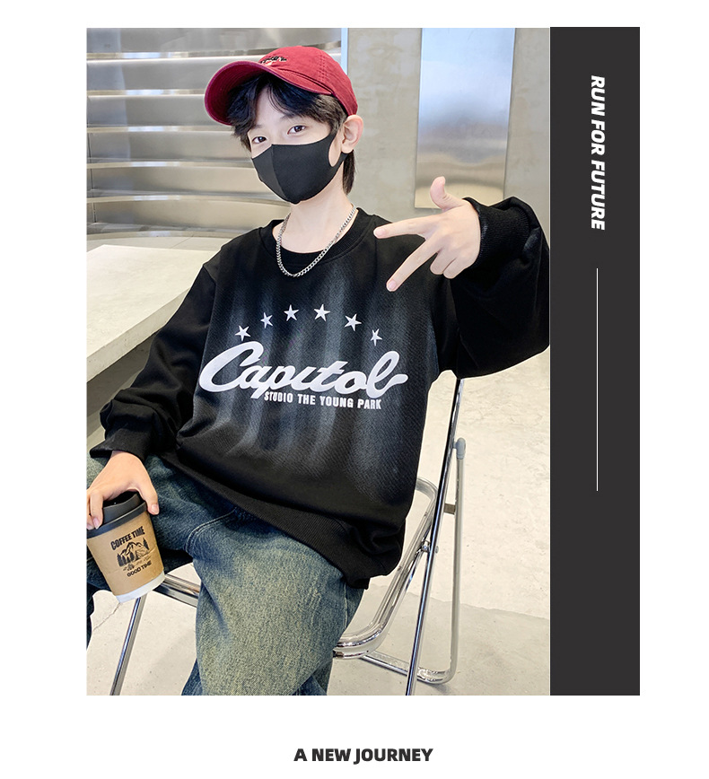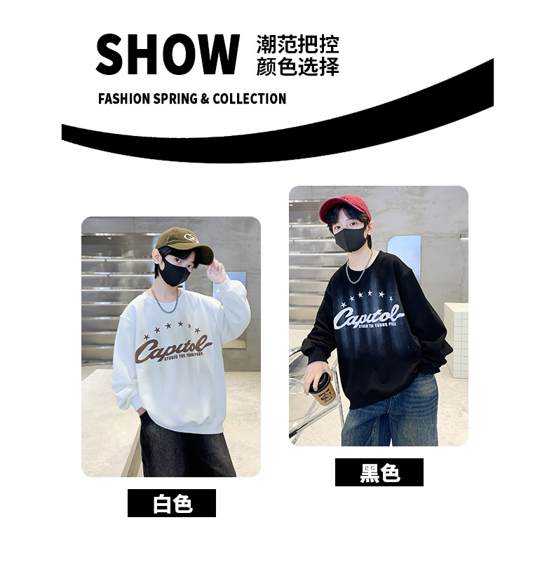 어린이 착용 소년 봄과 가을 미국 편지 라운드 넥 스웨트 셔츠 2024 새로운 스타일 미드 빅 어린이 봄 서양식 봄 패션