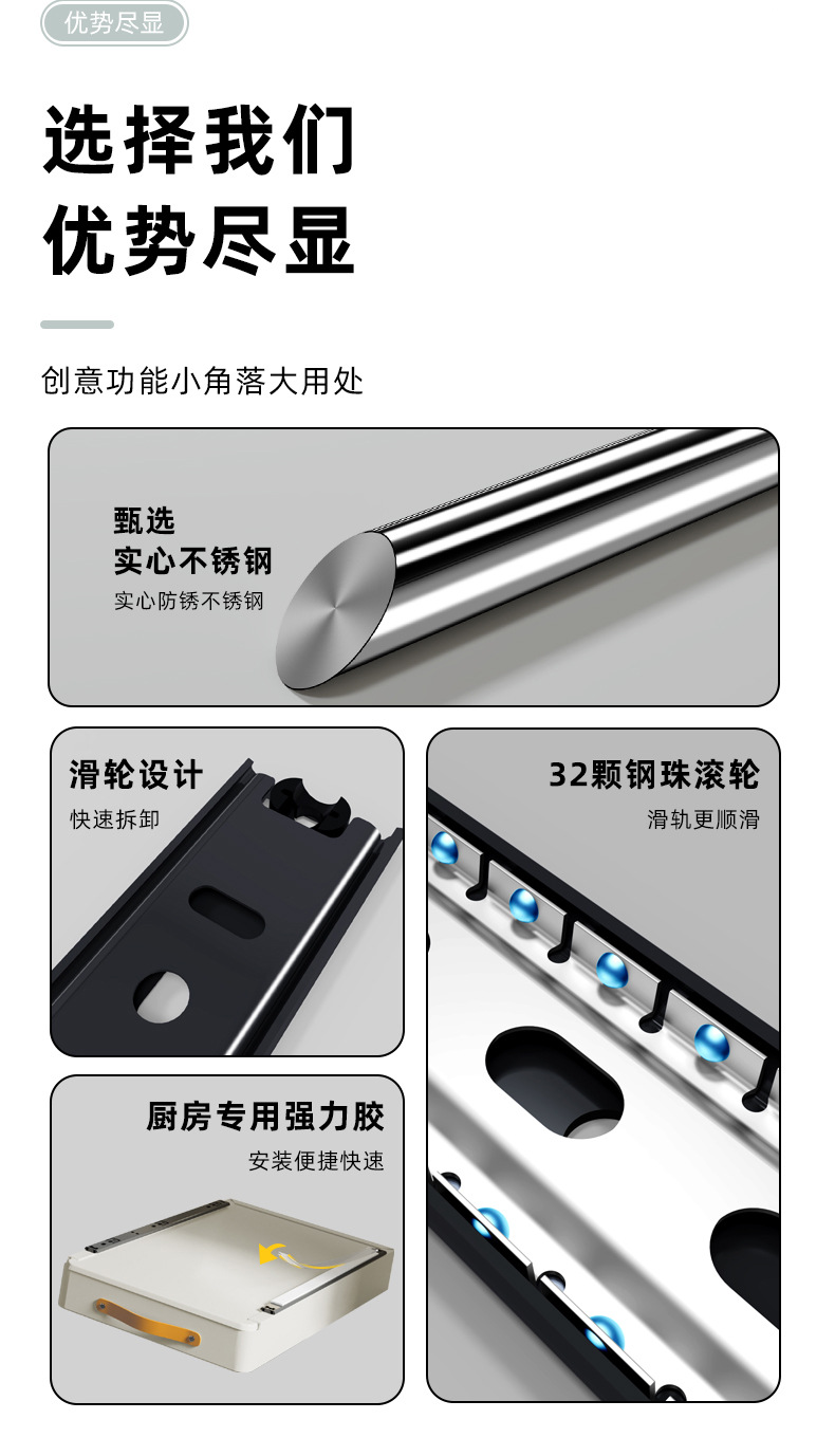 • 슬라이드 레일이 있는 확장형 인출식 접시걸이 [폭 30, 깊이 48CM]