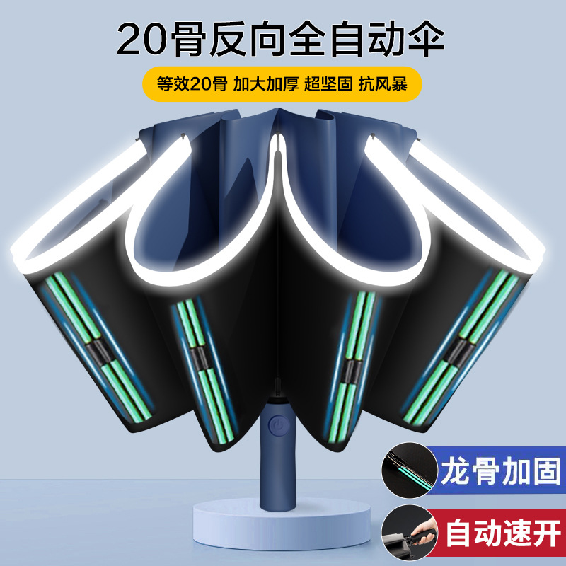 • 【60개 뼈☆이중골 + 바람저항 강화] 12K 전자동 써니우산 네이비블루