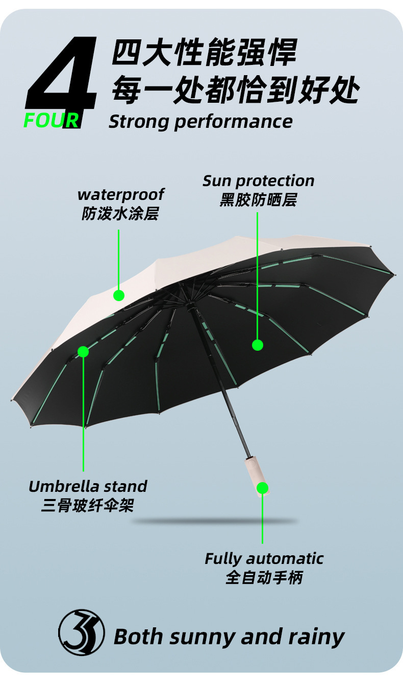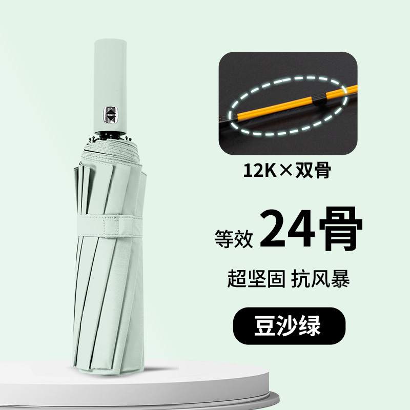 • 【60개 뼈☆이중 갈비 + 바람 저항 강화] 12K 전자동 우산 말차 그린