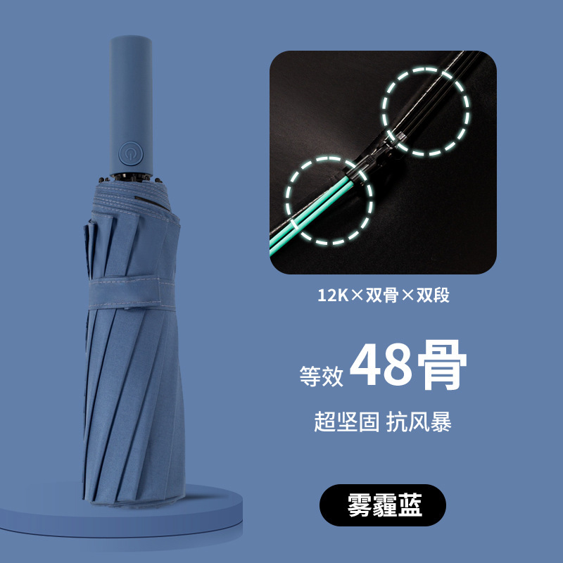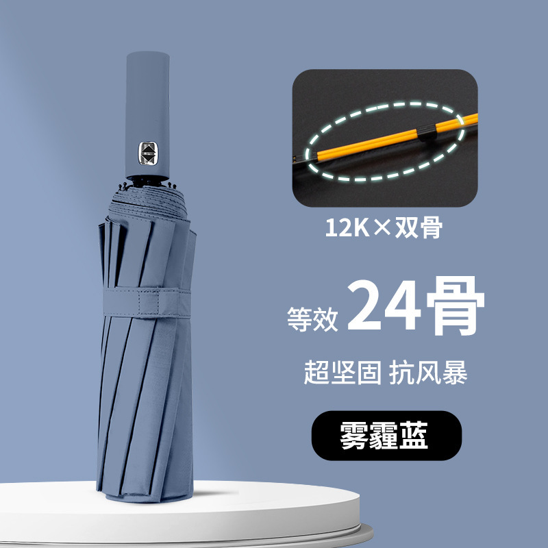 • 【60개 뼈☆이중골 + 바람저항 강화] 12K 전자동 써니우산 헤이즈블루
