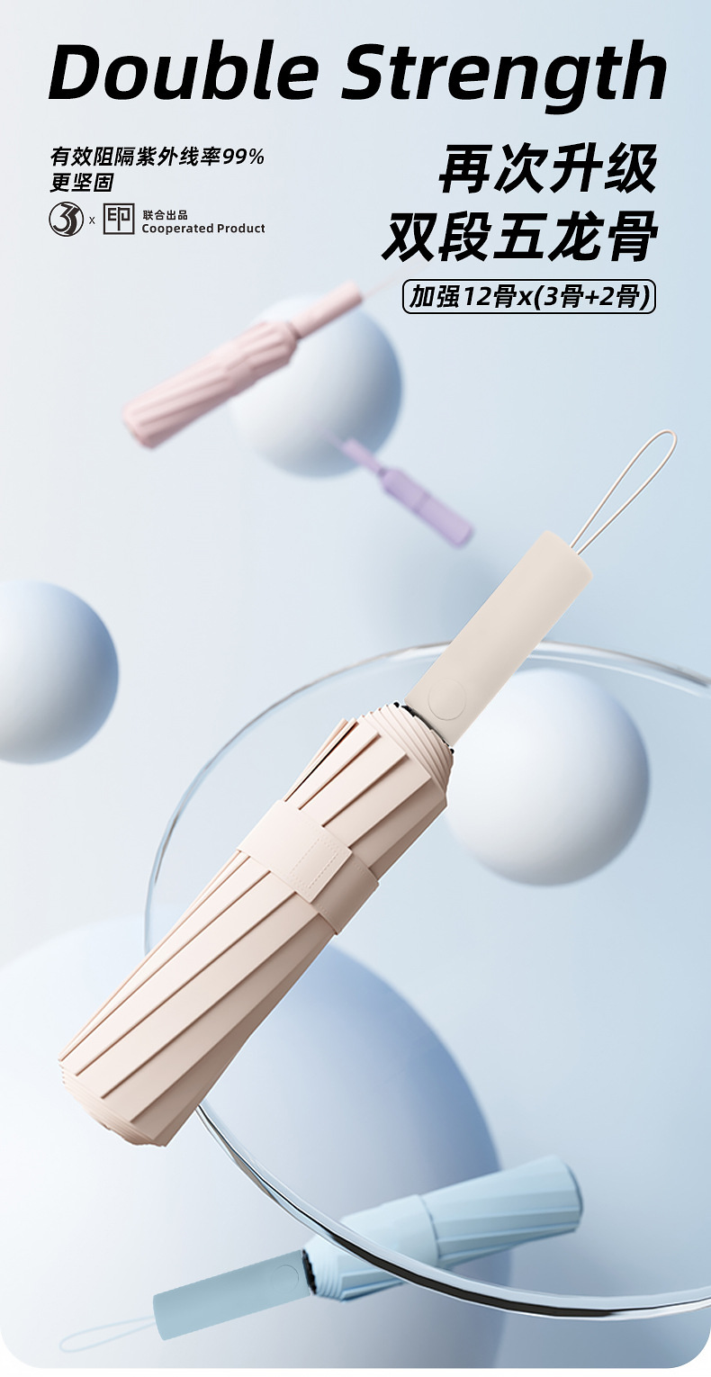 • 【60개 뼈☆이중골 + 바람저항 강화] 12K 전자동 써니우산 스카이블루