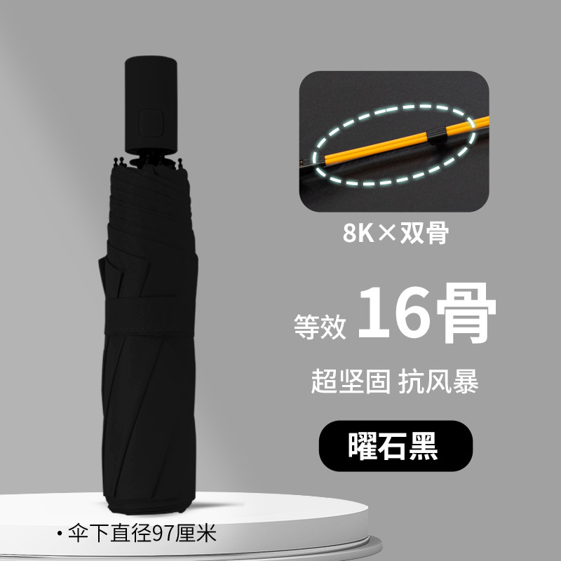• 【16개 뼈☆이중 뼈 + 강화 버전] 8k 전자동 우산 흑요석 검정