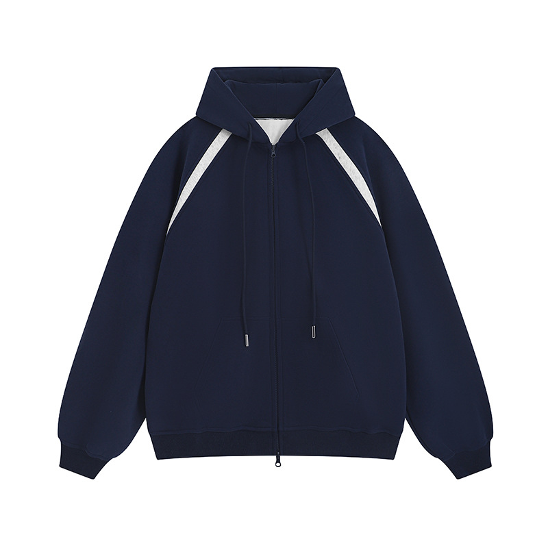남성과 여성을위한 헤비 380g 복합 코튼 라글란 슬리브 대비 컬러 후드 지퍼 스웨트 셔츠 남성 대학 스타일 루즈 재킷