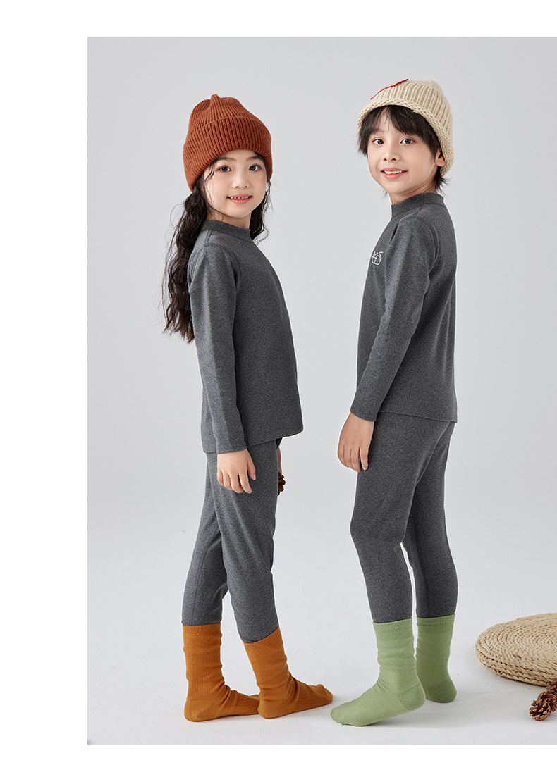 2024 양모 면 두꺼운 열 속옷 세트 중 큰 어린이 가정 옷 높은 탄성 뼈없는 기본 어린이 잠옷스토어 가기