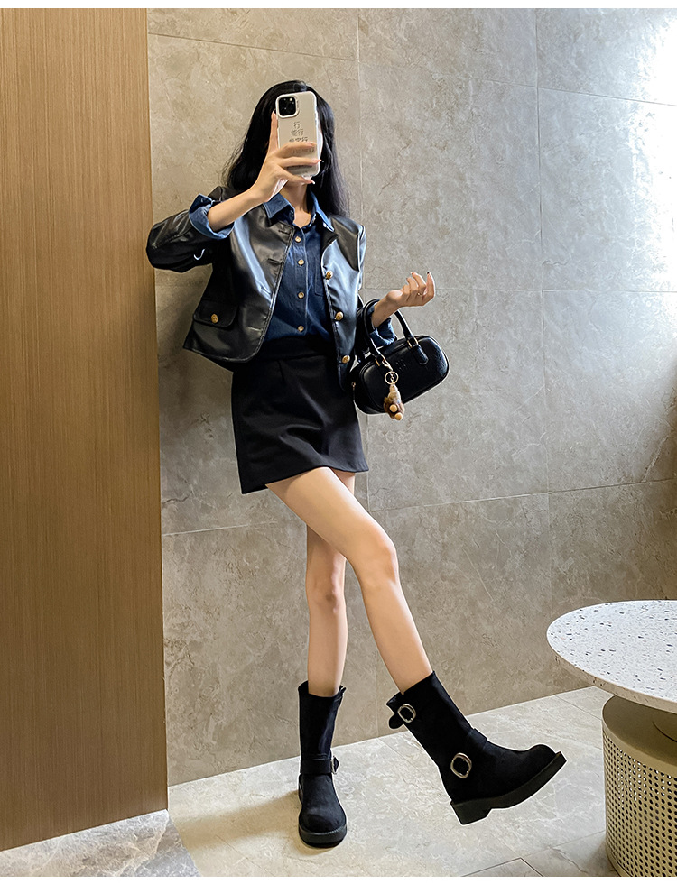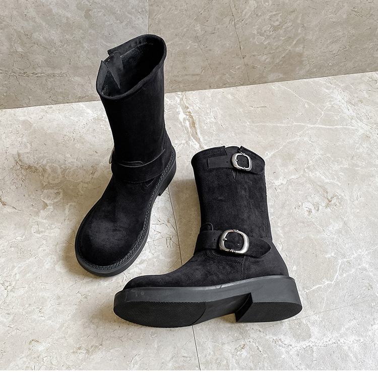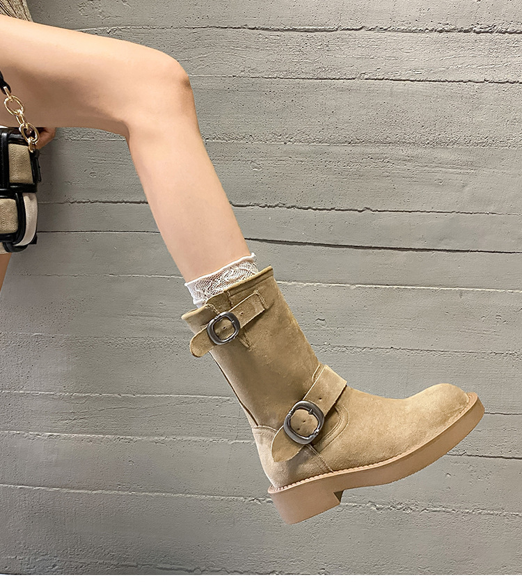 2025년 가을 겨울 신상 레트로 메탈 슈퍼 소프트 두꺼운 밑창 바이커 스트랩 숏부츠 여성용 마틴 부츠 스택 부츠스토어 가기