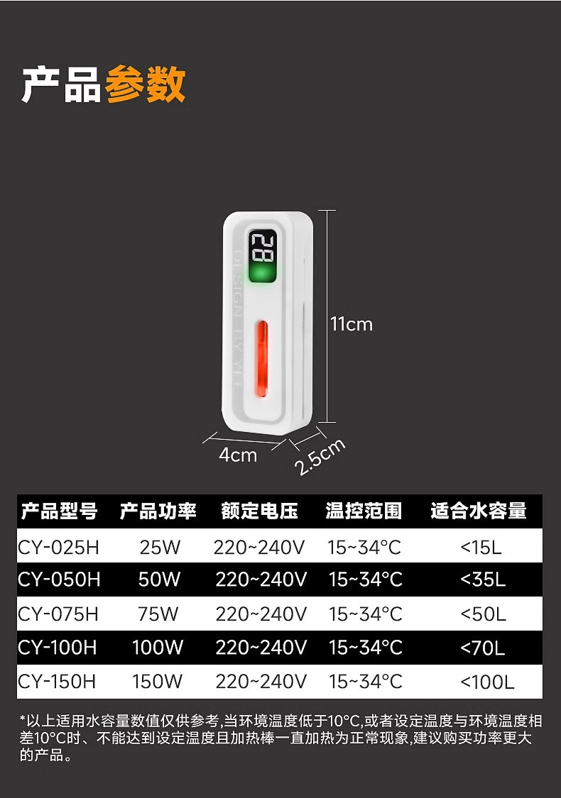 Yee 거북이 가열 막대 작은 낮은 물 수준 자동 일정한 온도 미니 절전 폭발 방지 어항 물 가열 막대 디지털 디스플레이