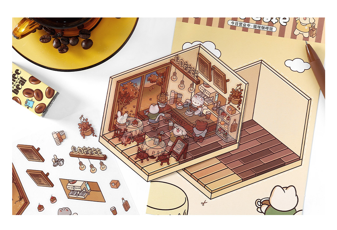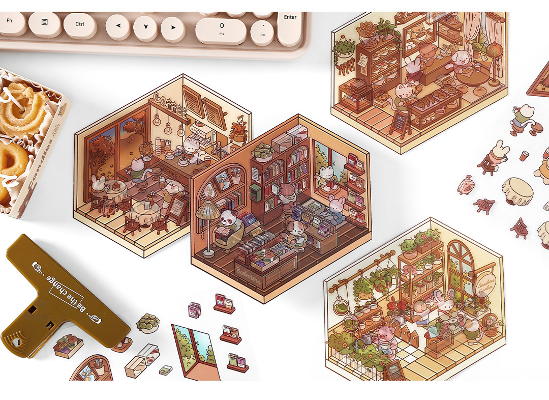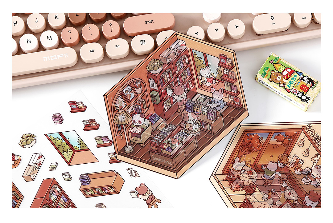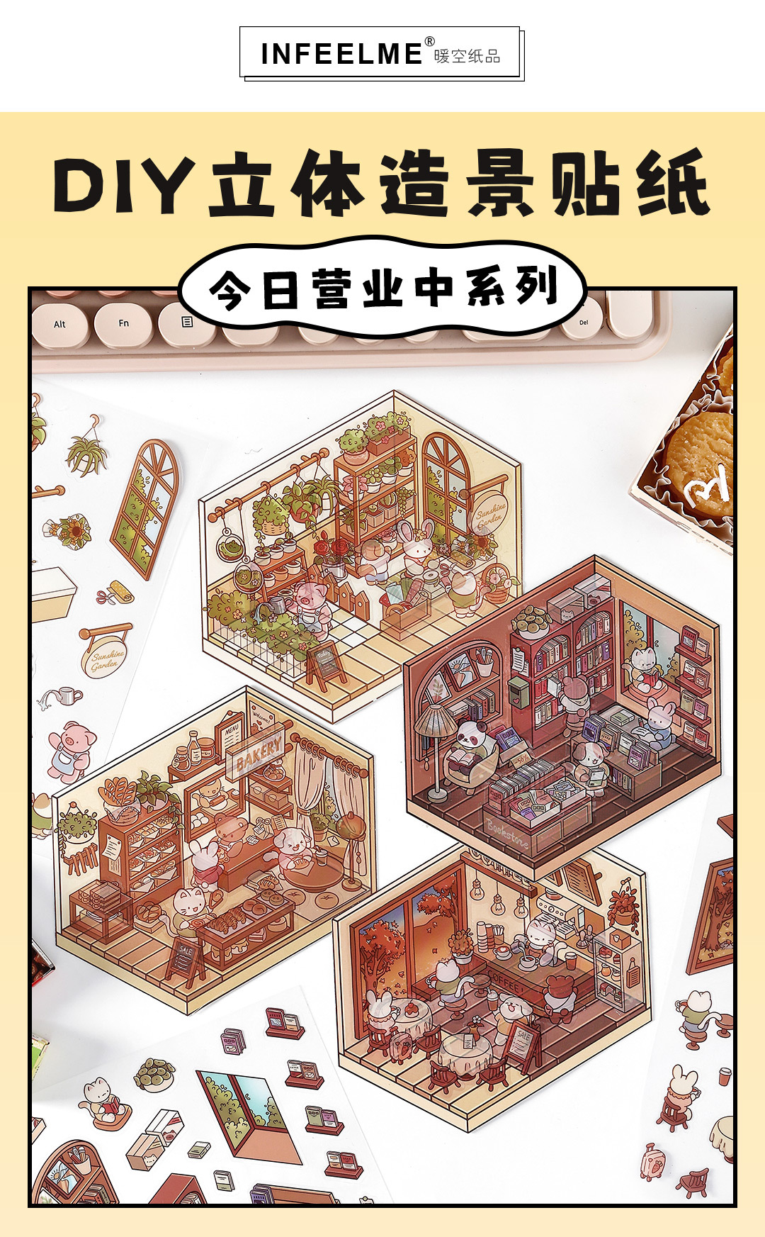 Infeel.MePET2.5D大造景贴纸 今日营业中十四弹 堆叠3D立体小屋贴 语闲pet立体微缩大造景贴纸 趣味世界5.0 创意3D叠堆小屋儿童手账 语闲pet立体微缩大造景贴纸 趣味世界4.0 视觉3D小屋儿童手账拼贴