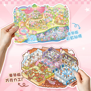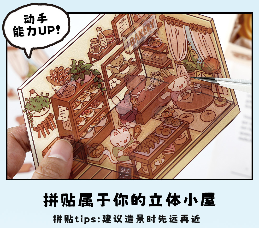 语闲pet立体微缩大造景贴纸 趣味世界系列视觉3D小屋儿童手账拼贴 语闲pet中号微缩造景贴纸 幸福小镇系列3D堆叠立体小屋手账趣味贴 语闲pet微缩造景贴纸书 定格快乐系列视觉3D立体小屋女孩手账玩具