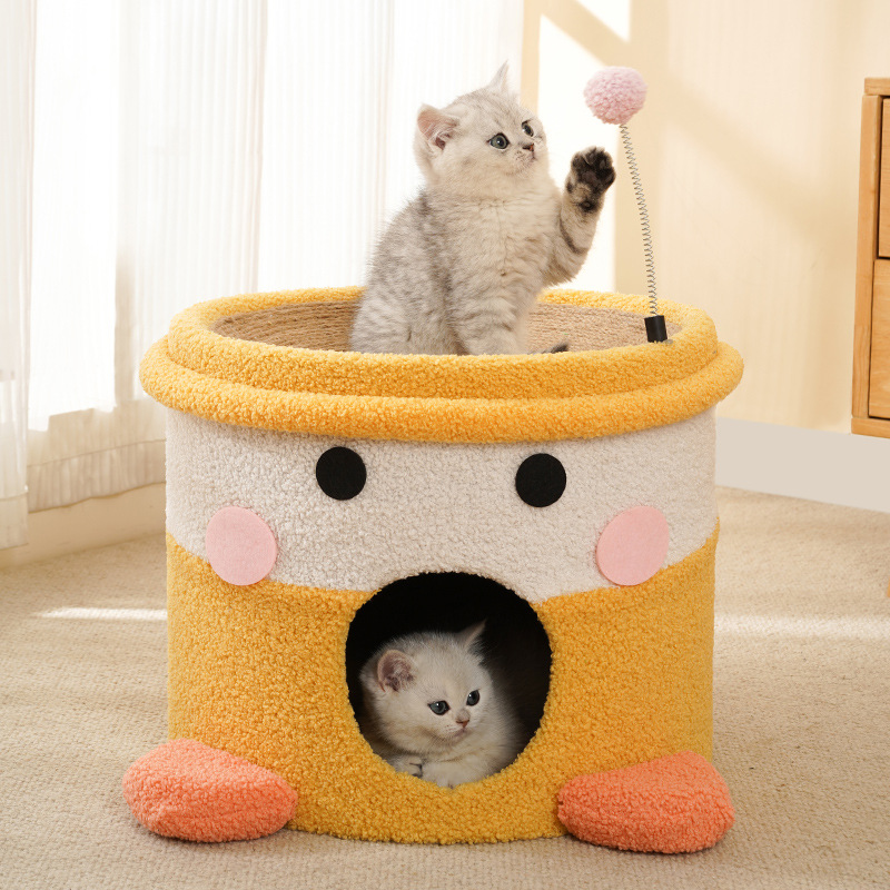 Meow Xianer 고양이 등반 프레임 Sisal 배럴 고양이 둥지 고양이 나무 통합 작은 점유 구역 더블 레이어 고양이 스크래치 보드 모든 계절에 유니버설스토어 가기